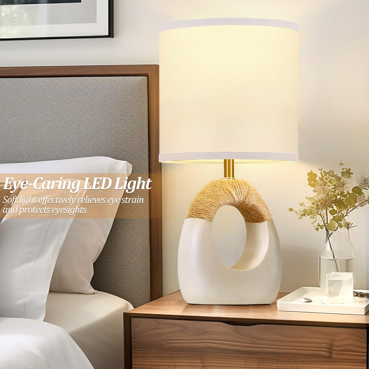 Ejiaxin Table Lamp For Bedroom Set Of 2 - Bedside Table Lamps With 3 Color Temperatures - Boho Rattan Lamps For Nightstands Smal
