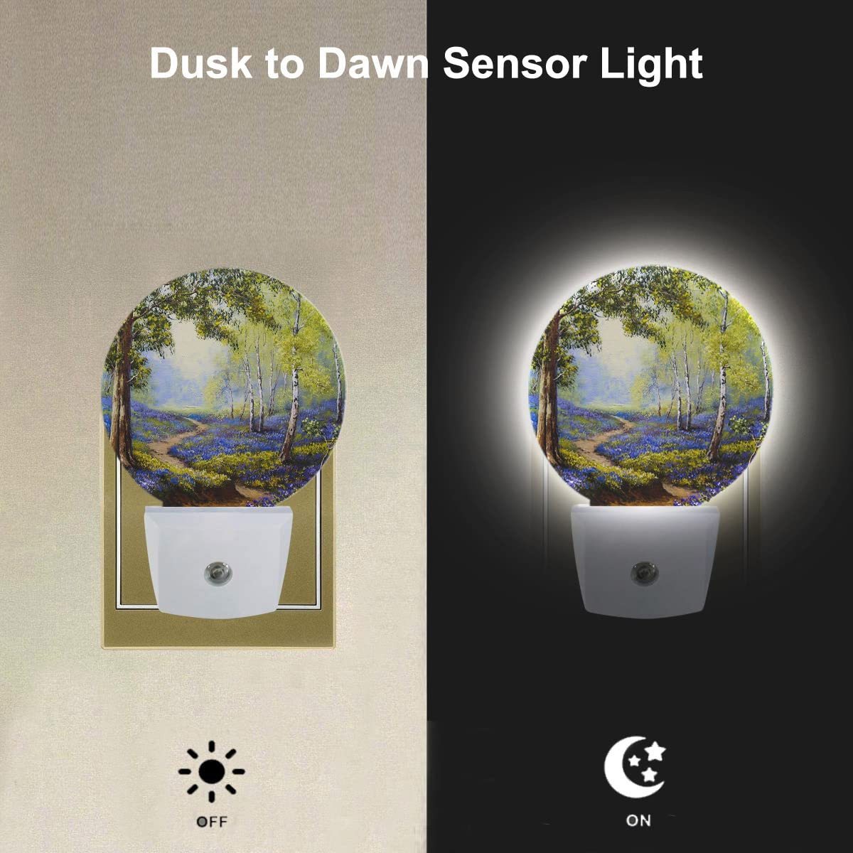 Ekobla Spring Flowers Garden Plug In Night Light Trees Lavender Blooming Pathway Landscape Auto Led Lamp Energy Saving Round Lig