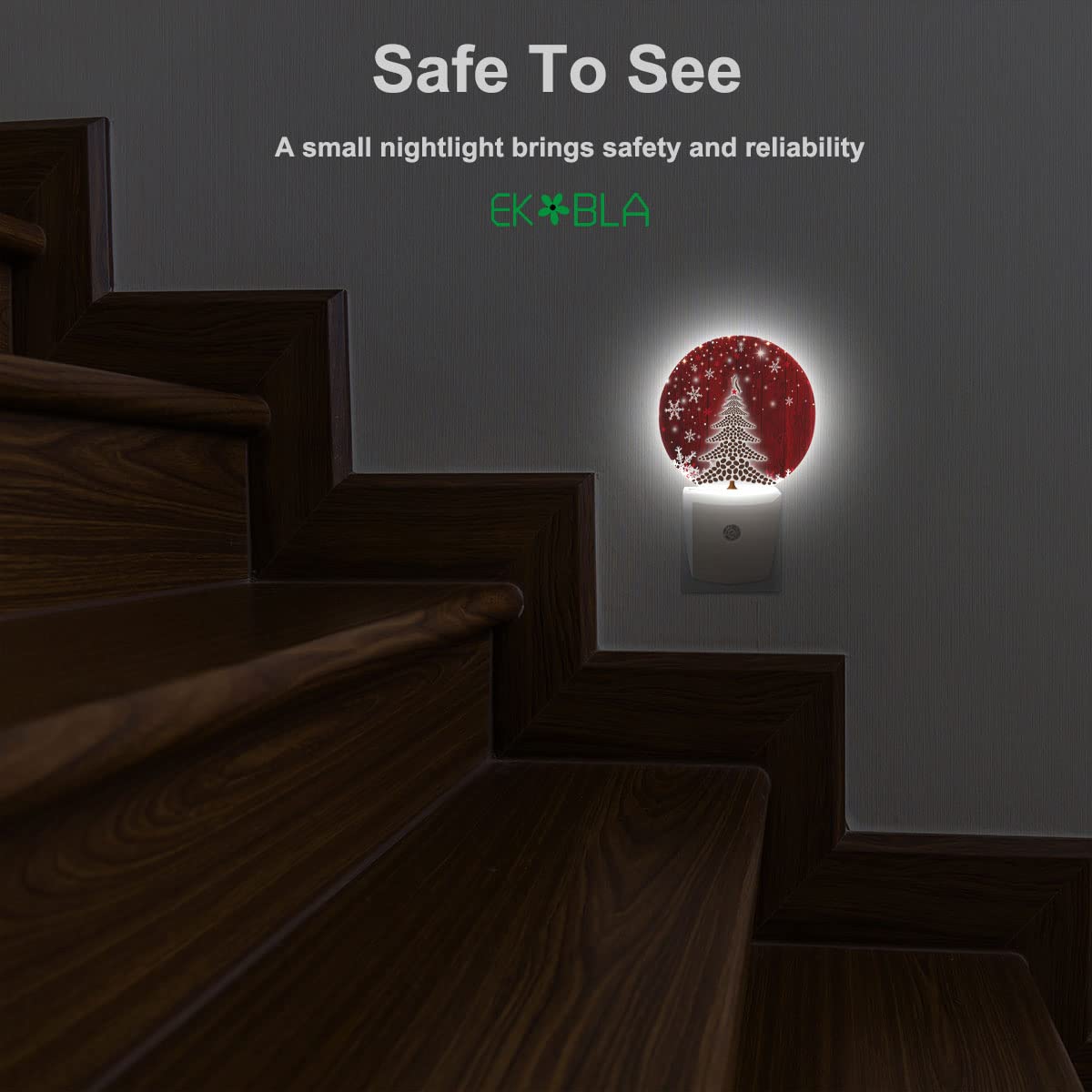 Q: What are the key features of the EKOBLA Winter Red Christmas Tree LED Night Light?A: The EKOBLA LED Night Light features a sensitive dusk to dawn sensor, which automatically turns the light on and off based on ambient light levels. It has a brightness of 0.5W, making it energy-efficient while providing enough light to navigate at night without disturbing others. The light is made with an acrylic shade and ABS plastic base, ensuring durability and safety.