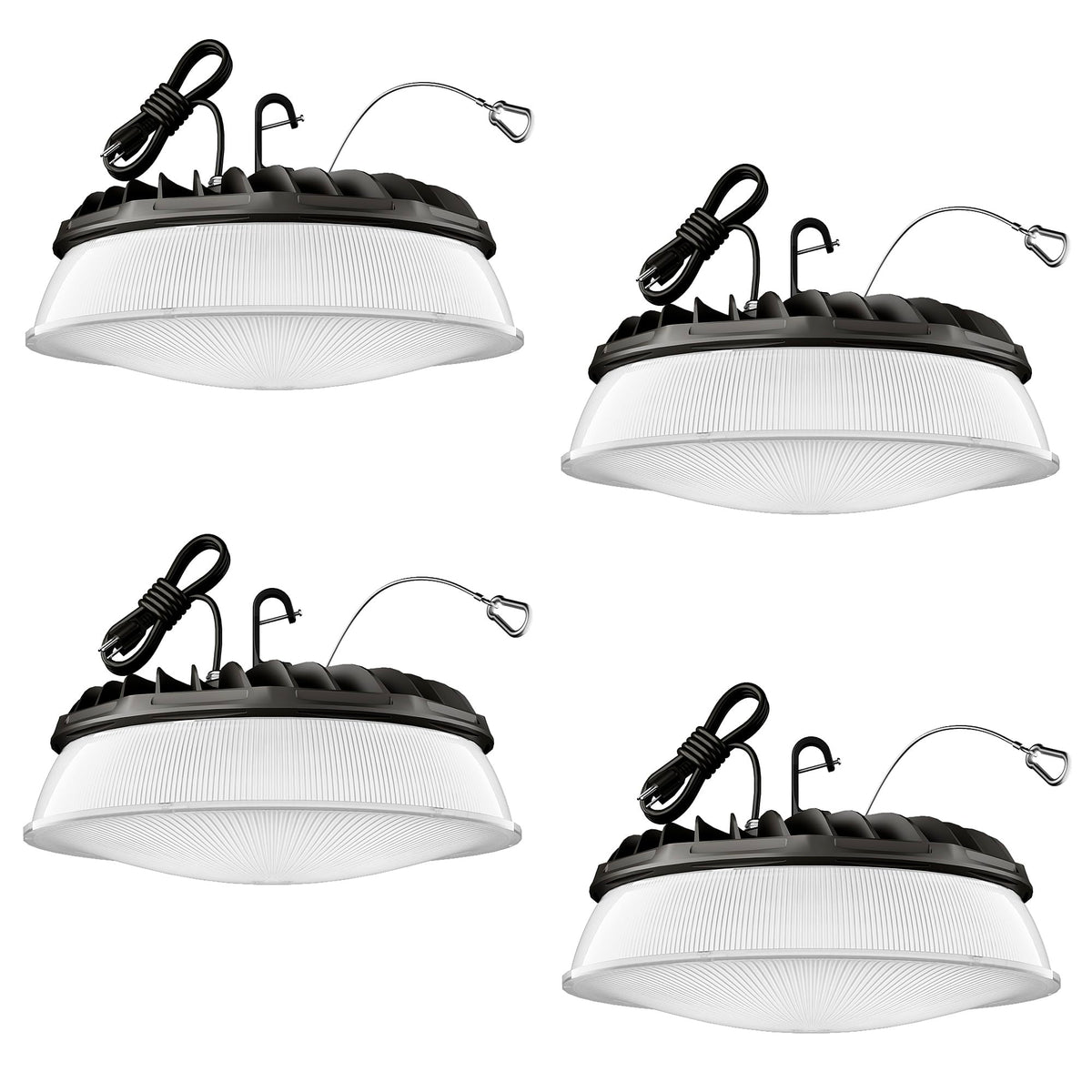 Elaruslux 200W 4 Pack Ufo Led High Bay Light With Diffuser 28,000Lm 5000K Led High Bay Lights Ac110-277V 5' Cable With Plug Wate