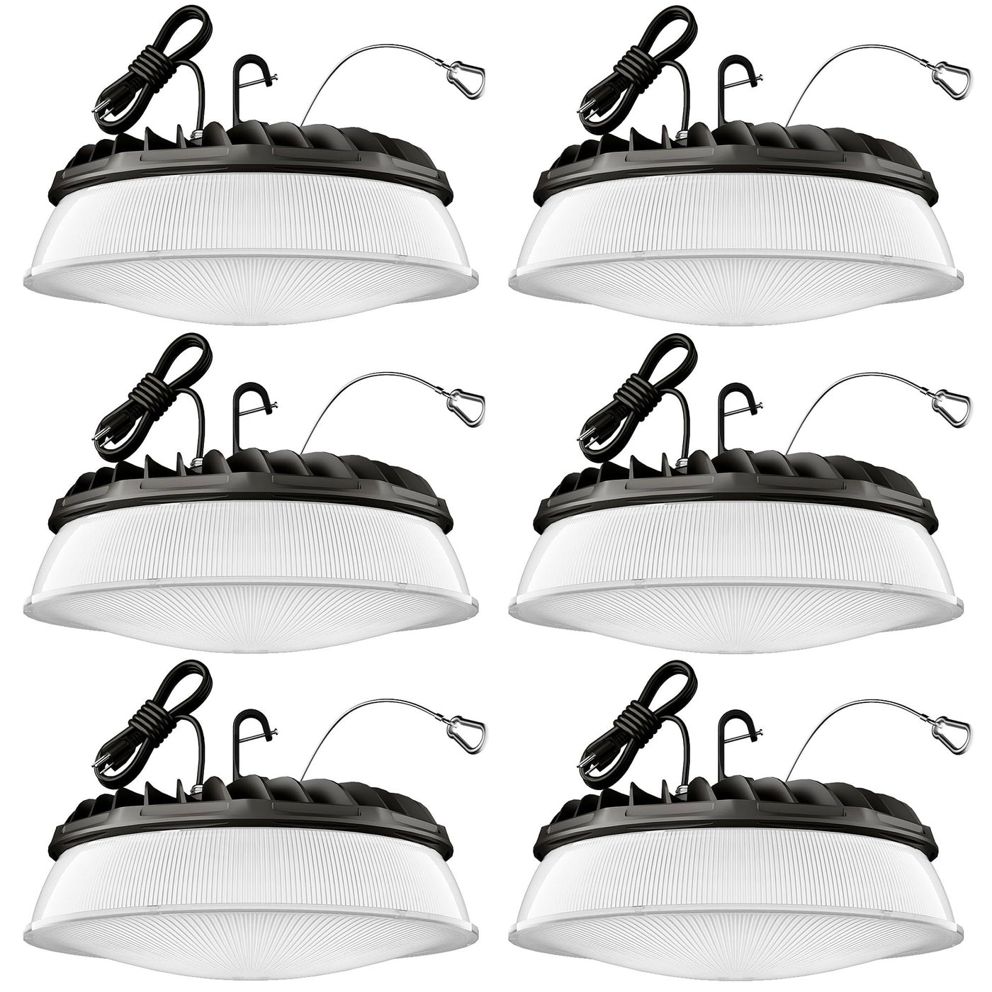 Elaruslux 200W 6 Pack Ufo Led High Bay Light With Reflector 28,000Lm 5000K Led High Bay Lights Ac110-277V 5' Cable With Plug Wat