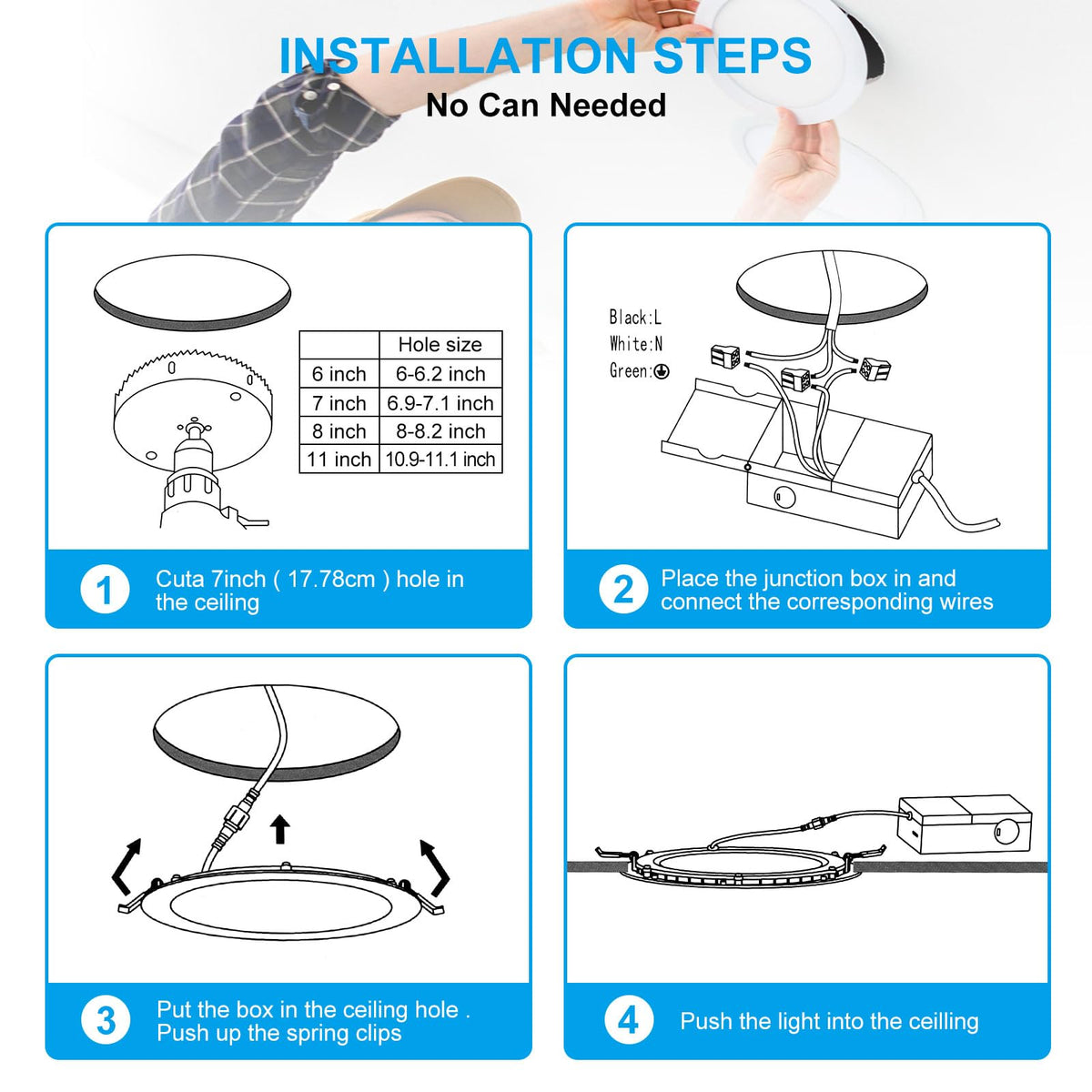 We Are Manufacture, True Quality With Professional, Buy With Confidence! Specifications Item Type: Led Recessed Panel Light Watts: 18W Ring Size:7.5Inch Hole Size: 6.9-7Inch Type Of Led: High Quality Smd2835 Lumens: 1600Lm Body Material: Aluminum + Lg Rated Hours: 25,000H Led Working Temperature: Less Than 40C Voltage: Ac 110V (Tric Dimmable) Installation Guide: 1.Turn Off The Home Power First. 2.Cut A Appropriate Hole On Ceiling According To Product Cut-Hole Size. 3.Connect The Led Transformer To The Power Supply. 4.Pull Up The Spring Clips And Insert The Light Fixture To The Hole. 5.Adjust It To Hook The Ceiling Tightly. Package Includes: 1 X 18W Recessed Panel Light 1 X Junction Box For Light 3 X Connectors 3 X Wire Nuts 1 X Instruction