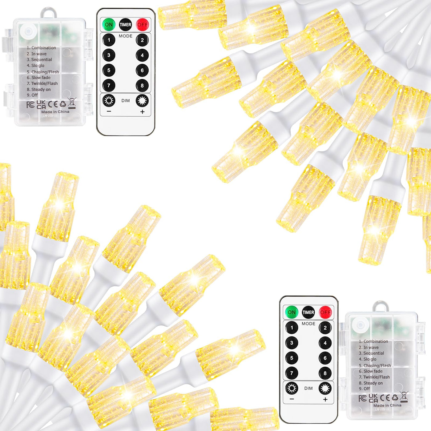 2 Pack Battery Powered: Each 20ft string includes 50 bright mini light bulbs with a 19.6 inch leading wire.