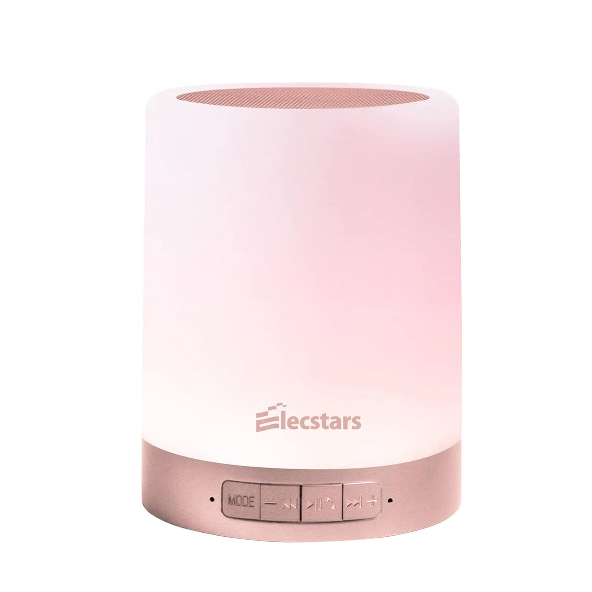 Elecstars Rose Gold Touch Bedside Lamp With Bluetooth Speaker & Dimmable Night Light