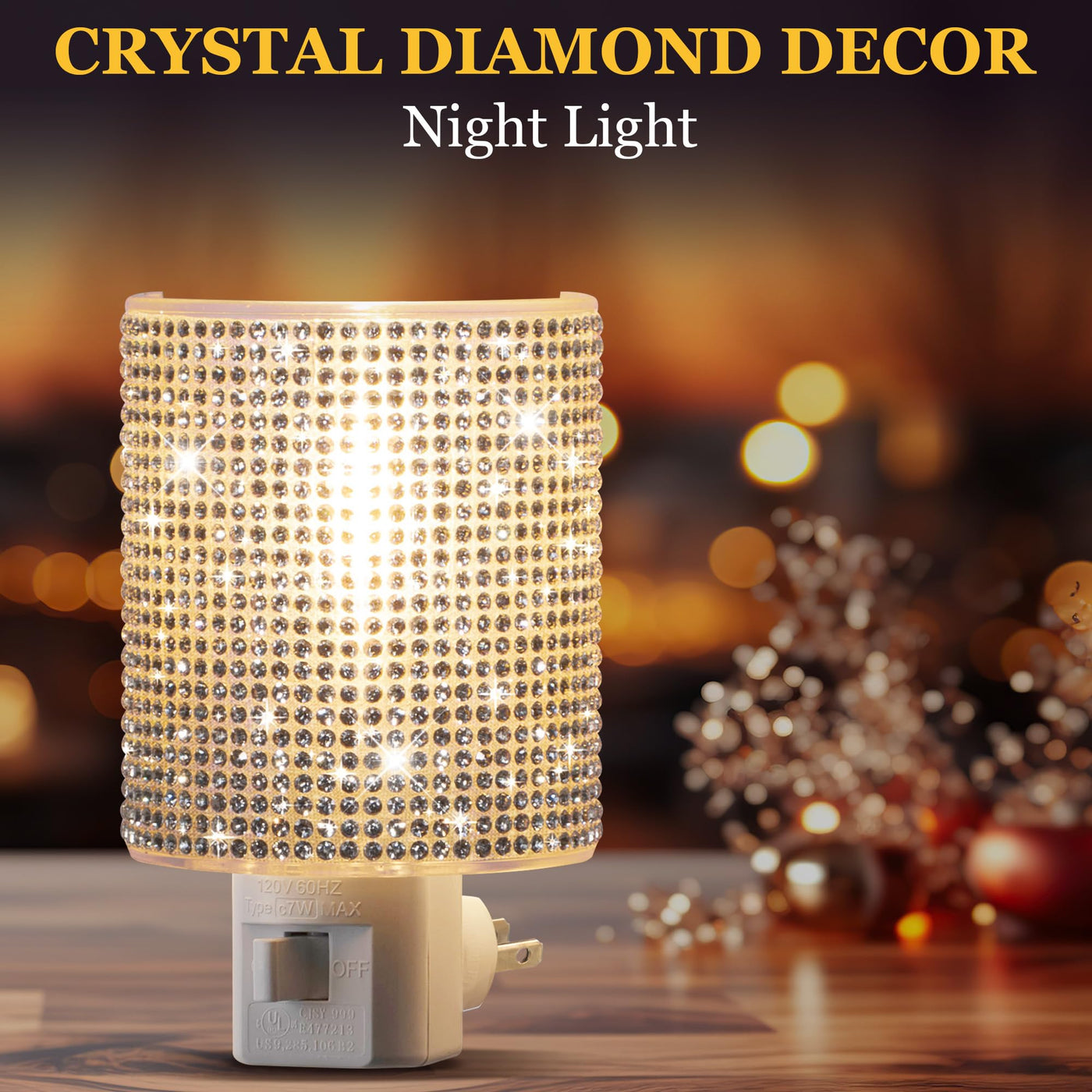 ElectricWise Warm White Crystal Decoration Night Light, Plug-In with Manual Switch & 360° Swivel for Bedroom Decor