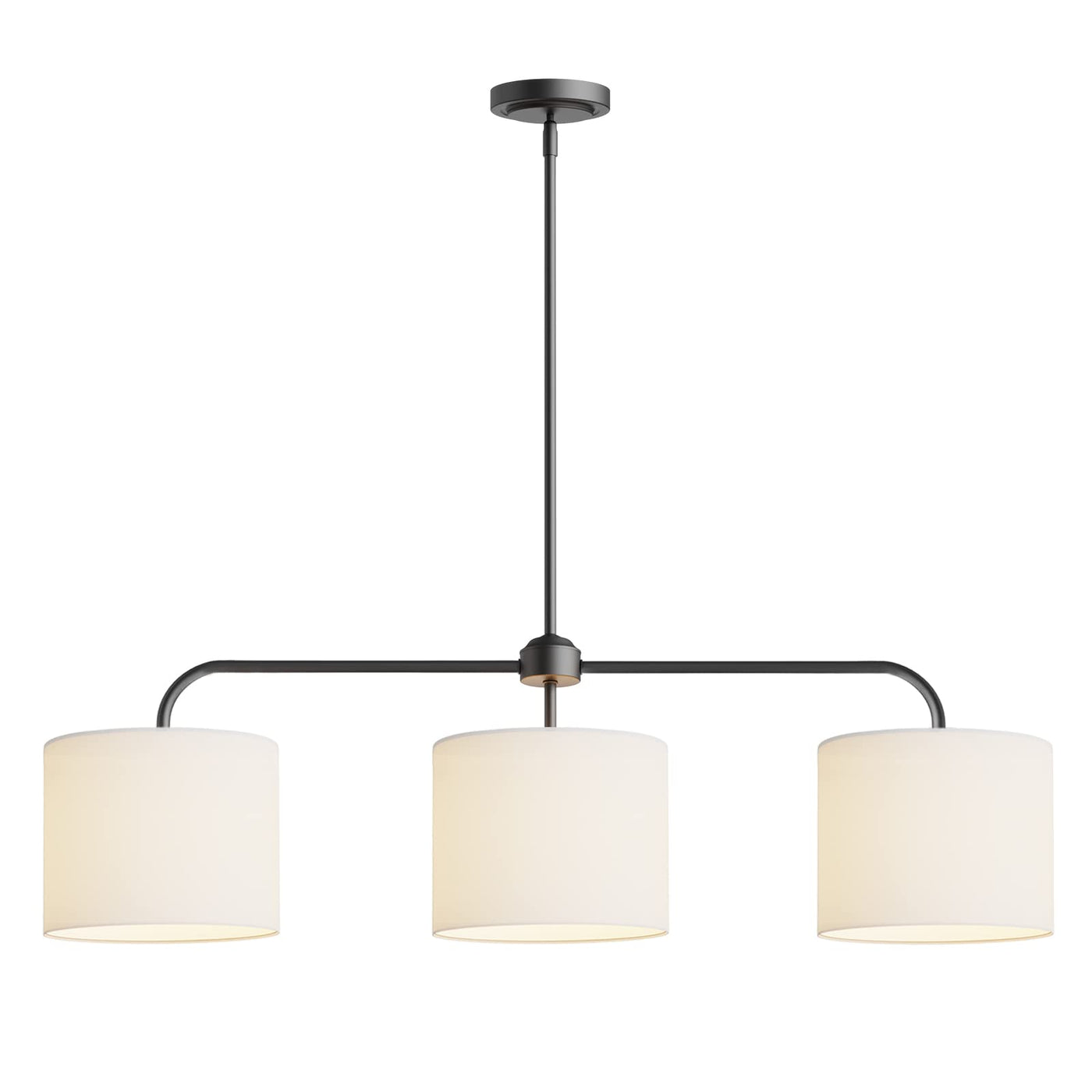 Electro Bp;40'' W 3-Light White Linen Drum Shade Chandelier With Black Metal Linear Pendant Light Fixture For Kitchen Island,Din