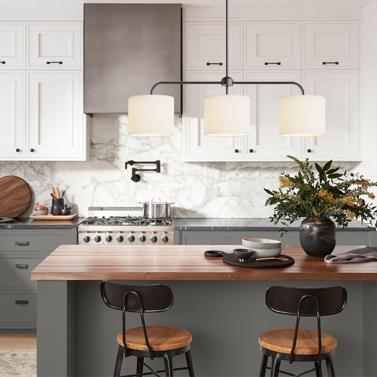 Make A Statement Above Your Dining Table Or Kitchen Island With Linear 3-Light Pendant,With Linen-Blend Fabric Shades And Diffusers For A Soft, Warm Glow. These Easygoing But Elegant Pieces Also Mix Well With A Variety Of Decor Styles In Any Room Of The House.