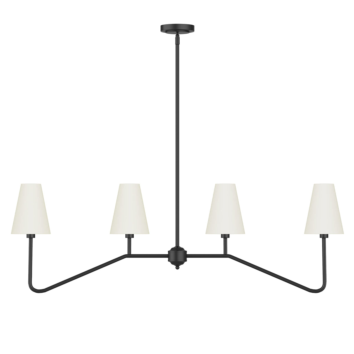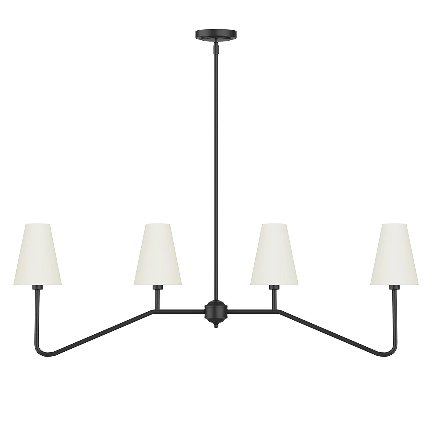 Electro Bp 47" 4-Light Linear Kitchen Island Chandelier, Matt Black & White Linen Shades