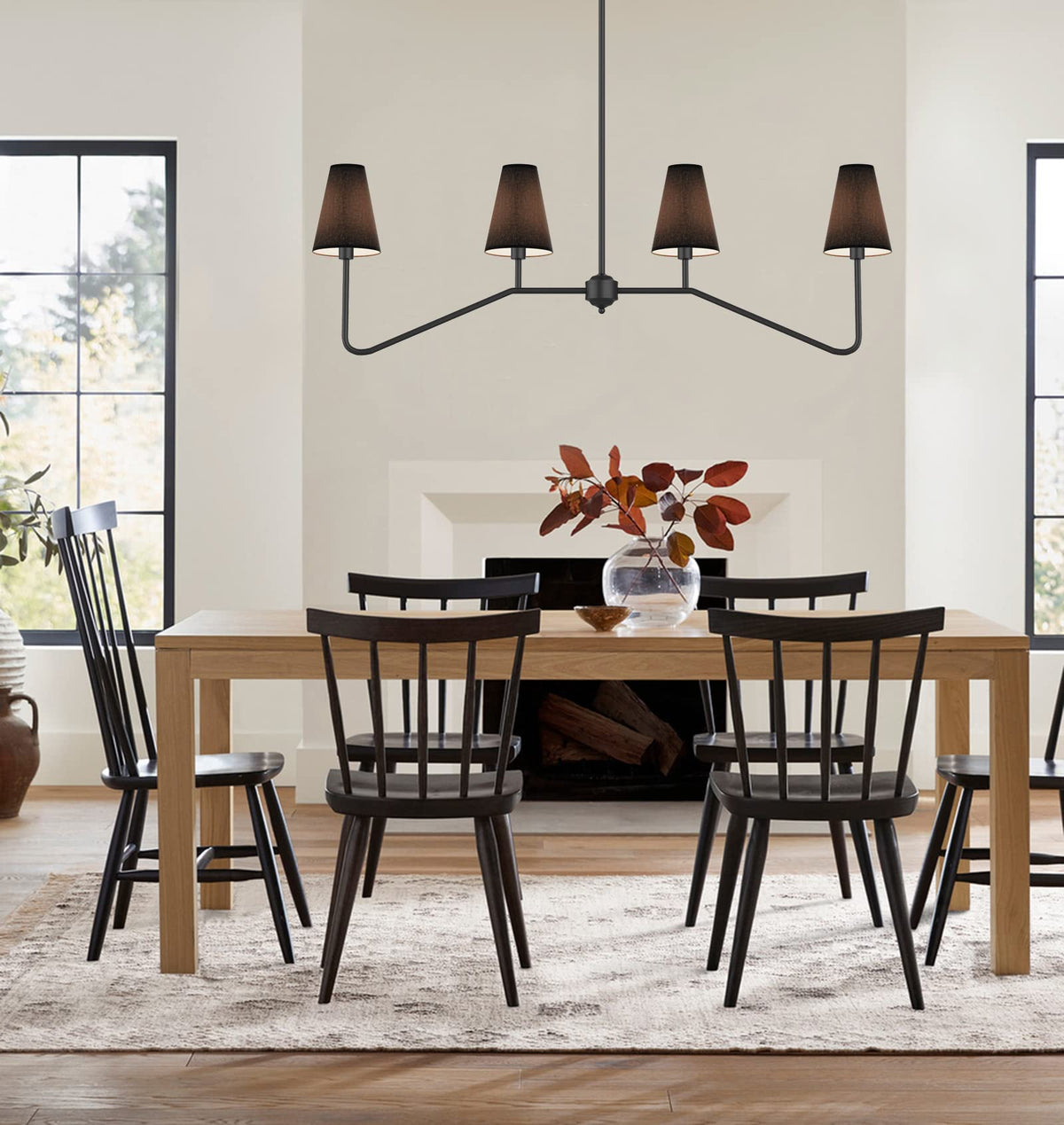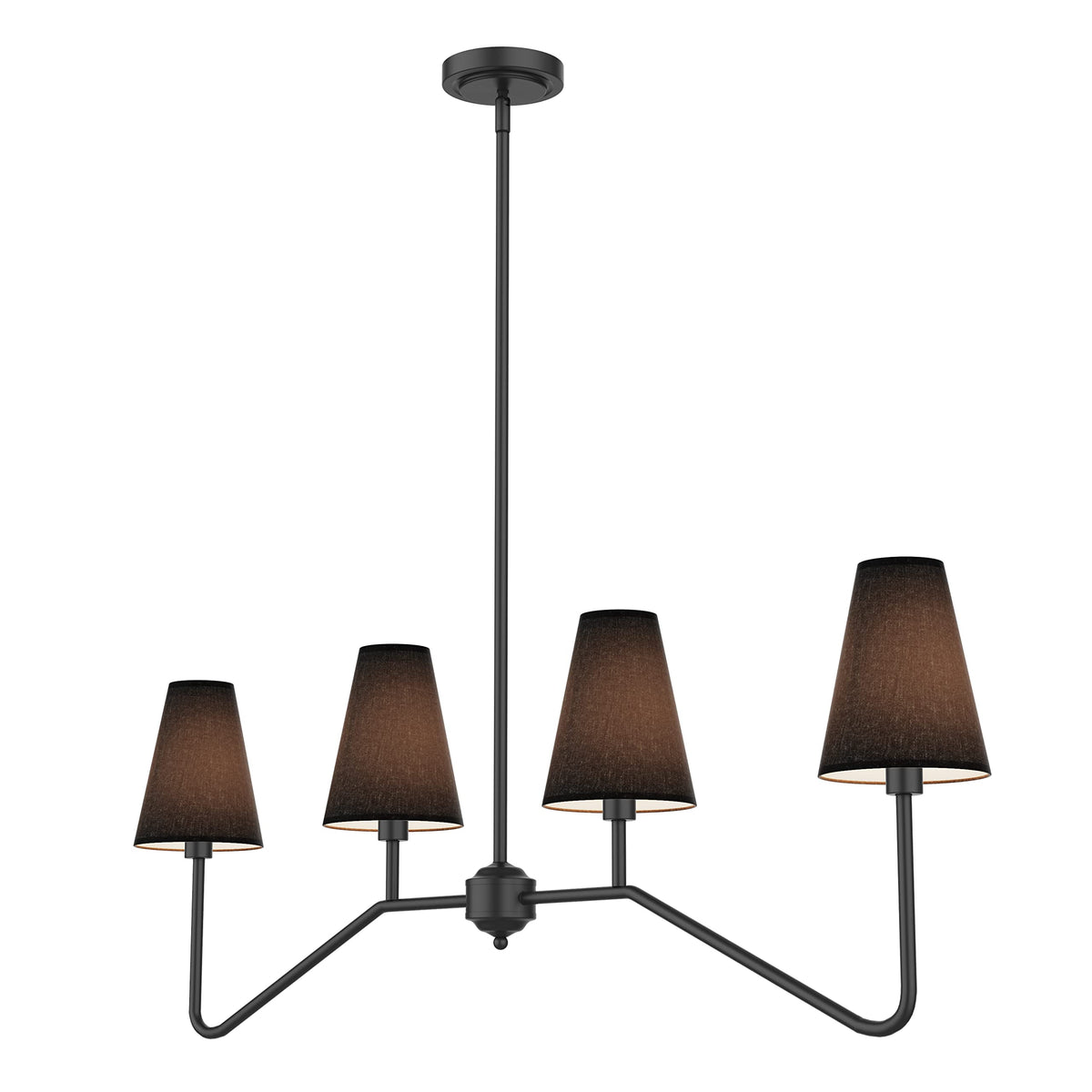 Electro Bp;47'' W 4-Light Linear Kitchen Island Lighting Fixture Classic Chandeliers Matt Black With Black Linen Shades 160W