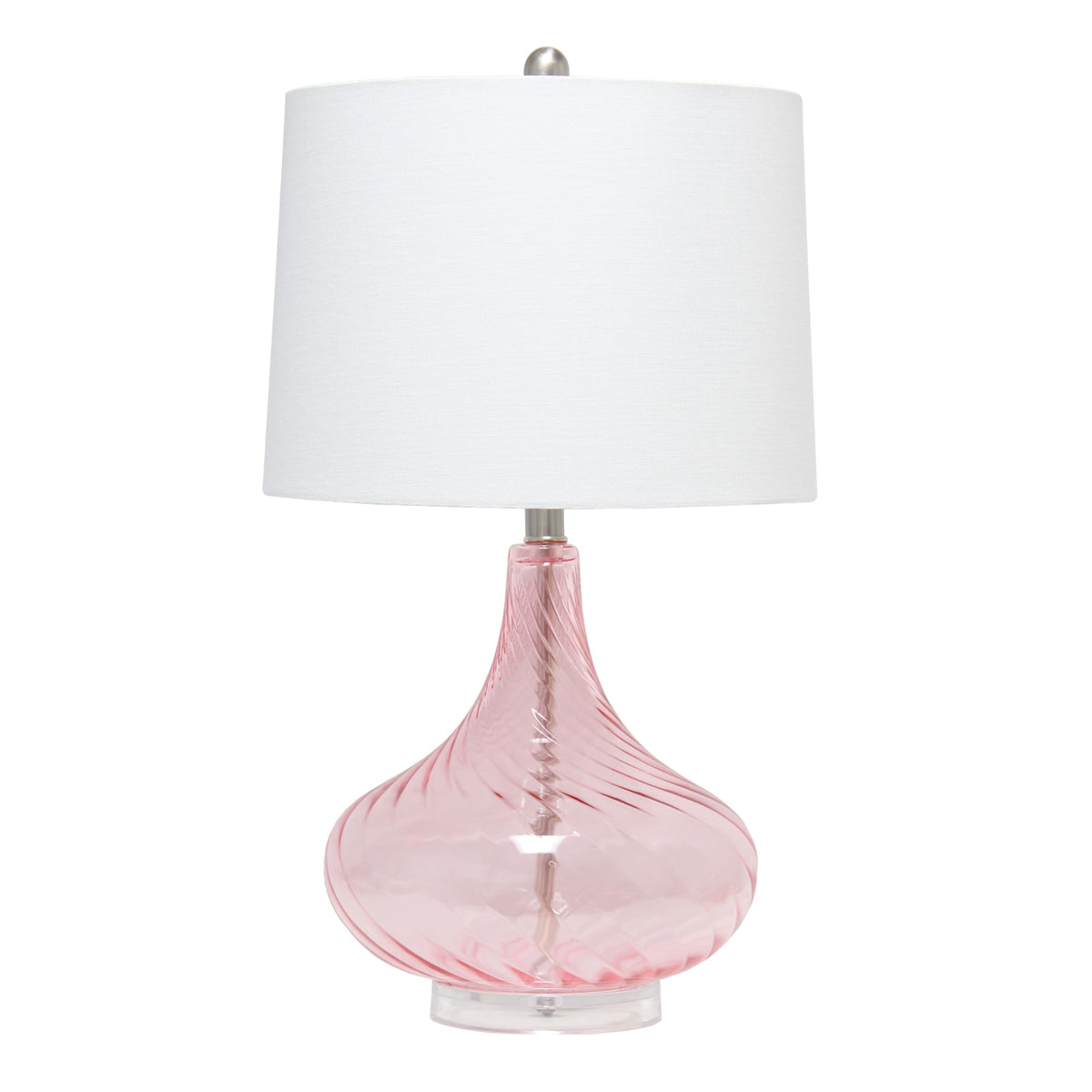 Elegant Designs 24'' Modern Refined Rippled Colored Glass Table Lamp with White Linen Tapered Drum Shade for Study Nursery Dining Room Bedroom Living Room Guest Room Pink