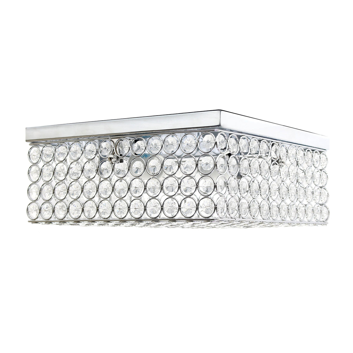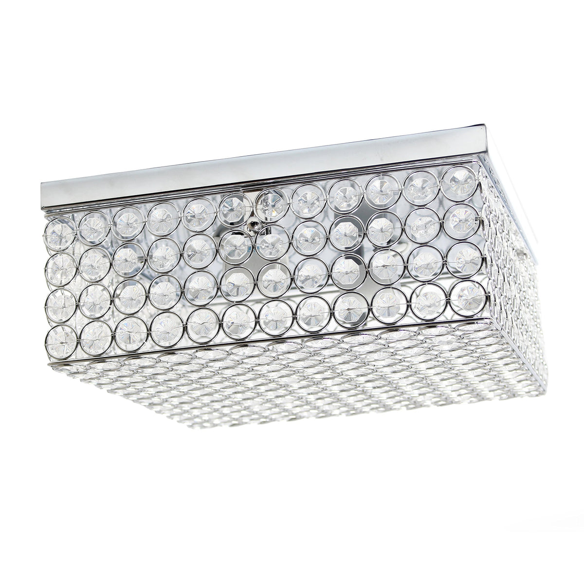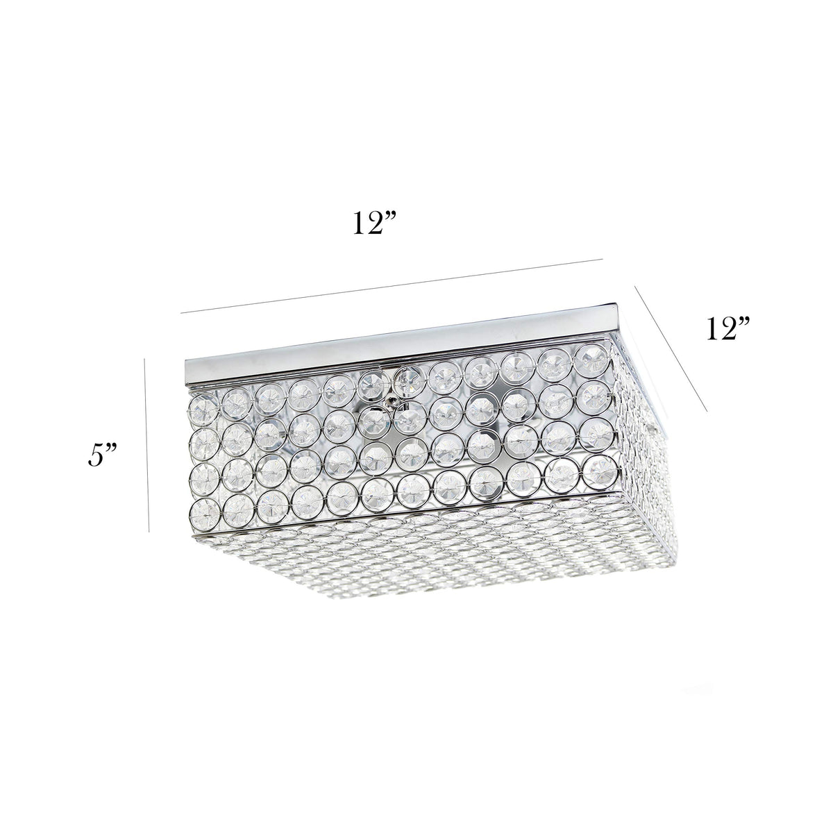 Elegant Designs FM1004-CHR Elipse Crystal 12 Inch Modern Metal 2 Light Squared Ceiling Flush Mount Fixture, Chrome