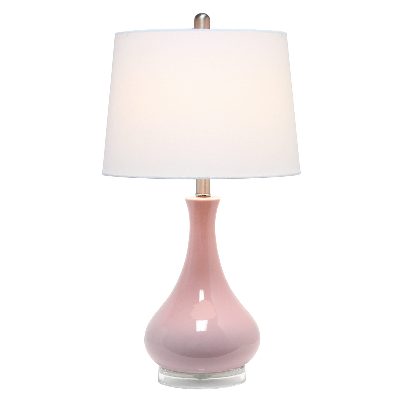 Elegant Designs Glossy Rose Pink Ceramic Tear Drop Table Lamp - 26.25" Tall