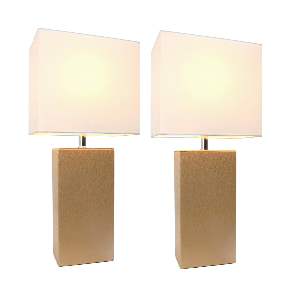 Elegant Designs Lc2000-Bge-2Pk 2 Pack Modern Leather Table Lamps With White Fabric Shades, Beige