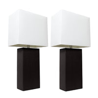 Elegant Designs Lc2000-Blk-2Pk 2 Pack Modern Leather Table Lamps With White Fabric Shades, Black