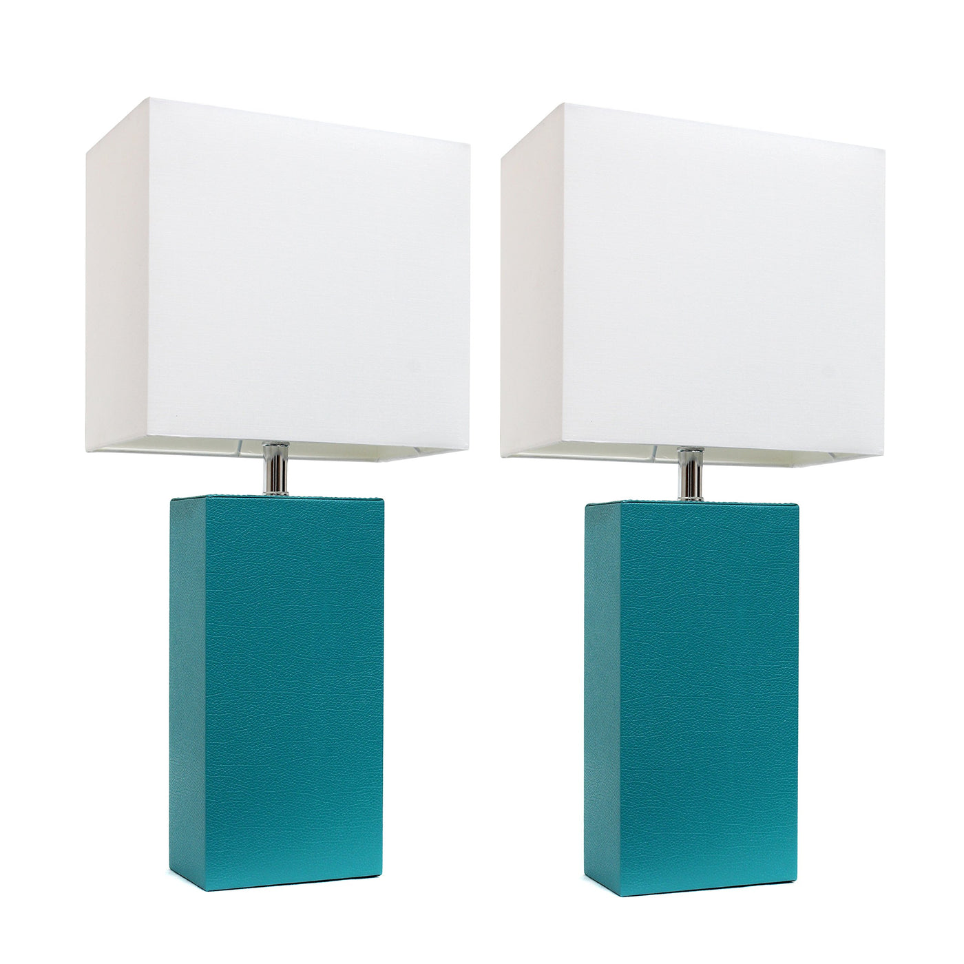 Elegant Designs LC2000-TEL-2PK 2 Pack Modern Leather Table Lamps with White Fabric Shades Teal