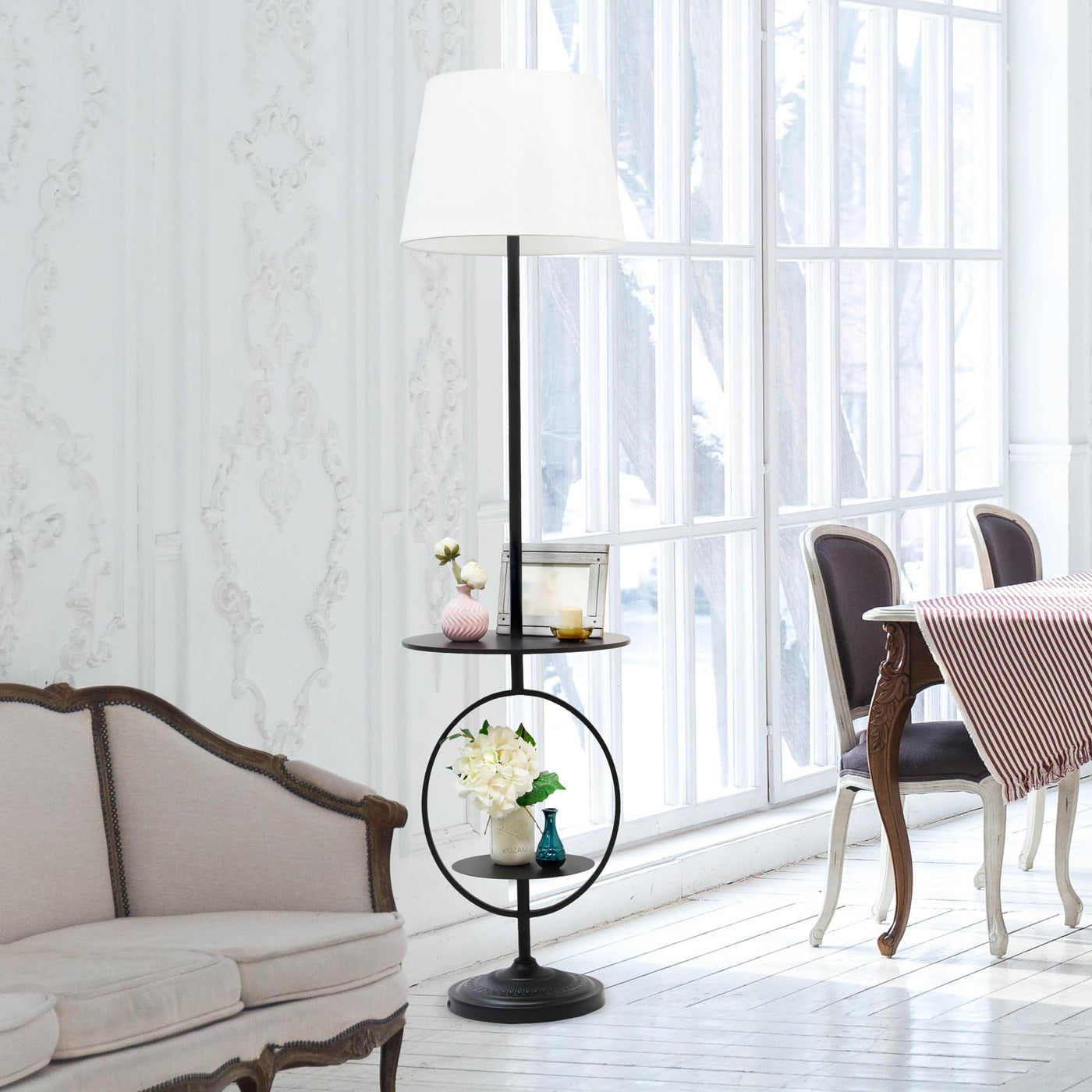 For the minimalist looking for a multifunctional yet practical solution to their lighting needs, this dual shelf floor lamp is the ideal purchase. This product combines a simple and traditional standing lamp paired with two shelves to store not only basic necessities but decorative accessories as well. This floor lamp will look great in the room of your choice, all the while taking up little to no space.