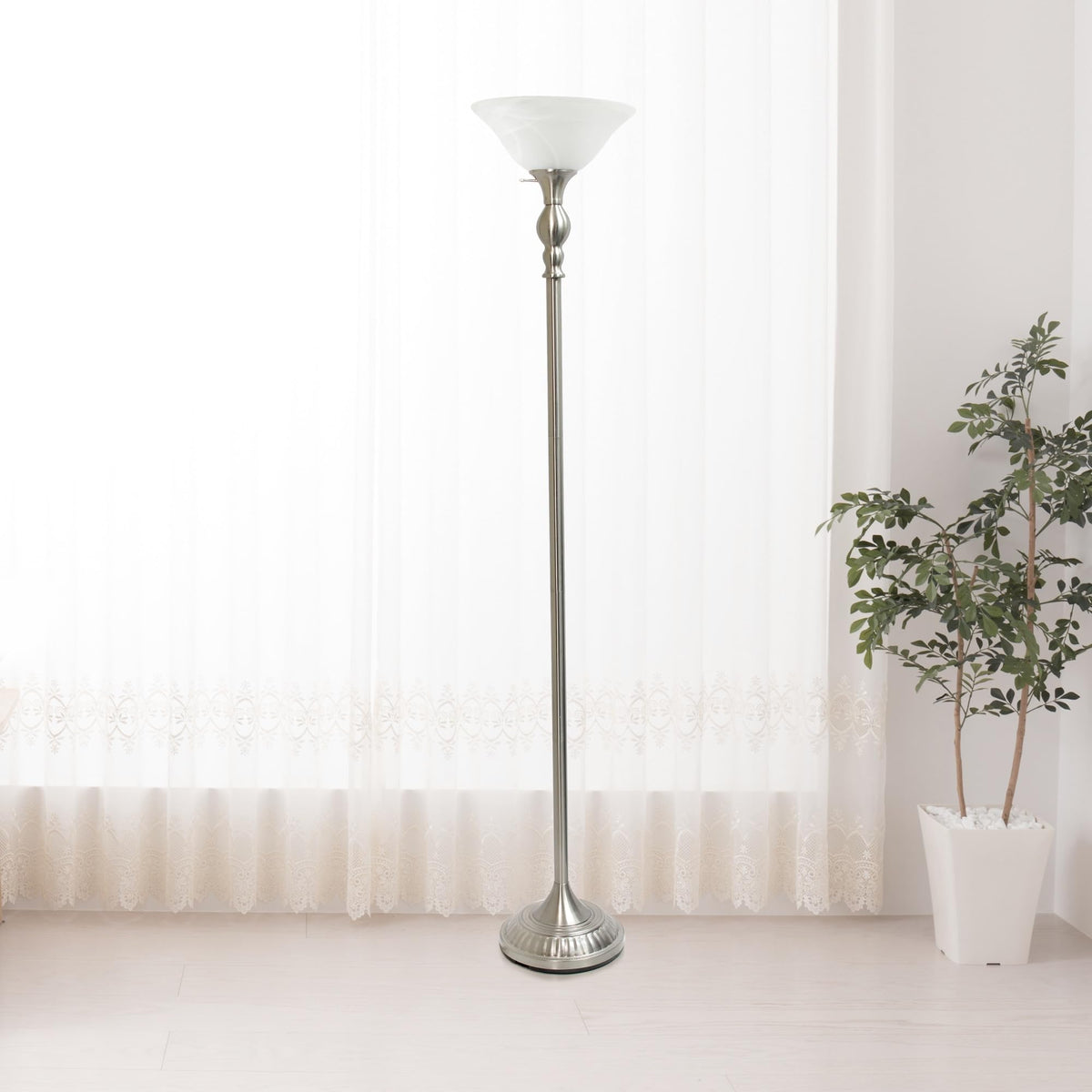 Q: How should I clean and maintain the Elegant Designs LF2001-BSN floor lamp?A: To clean the lamp, simply use a soft, damp cloth to wipe down the metal parts and a gentle cleaner for the glass shade, avoiding abrasive materials.