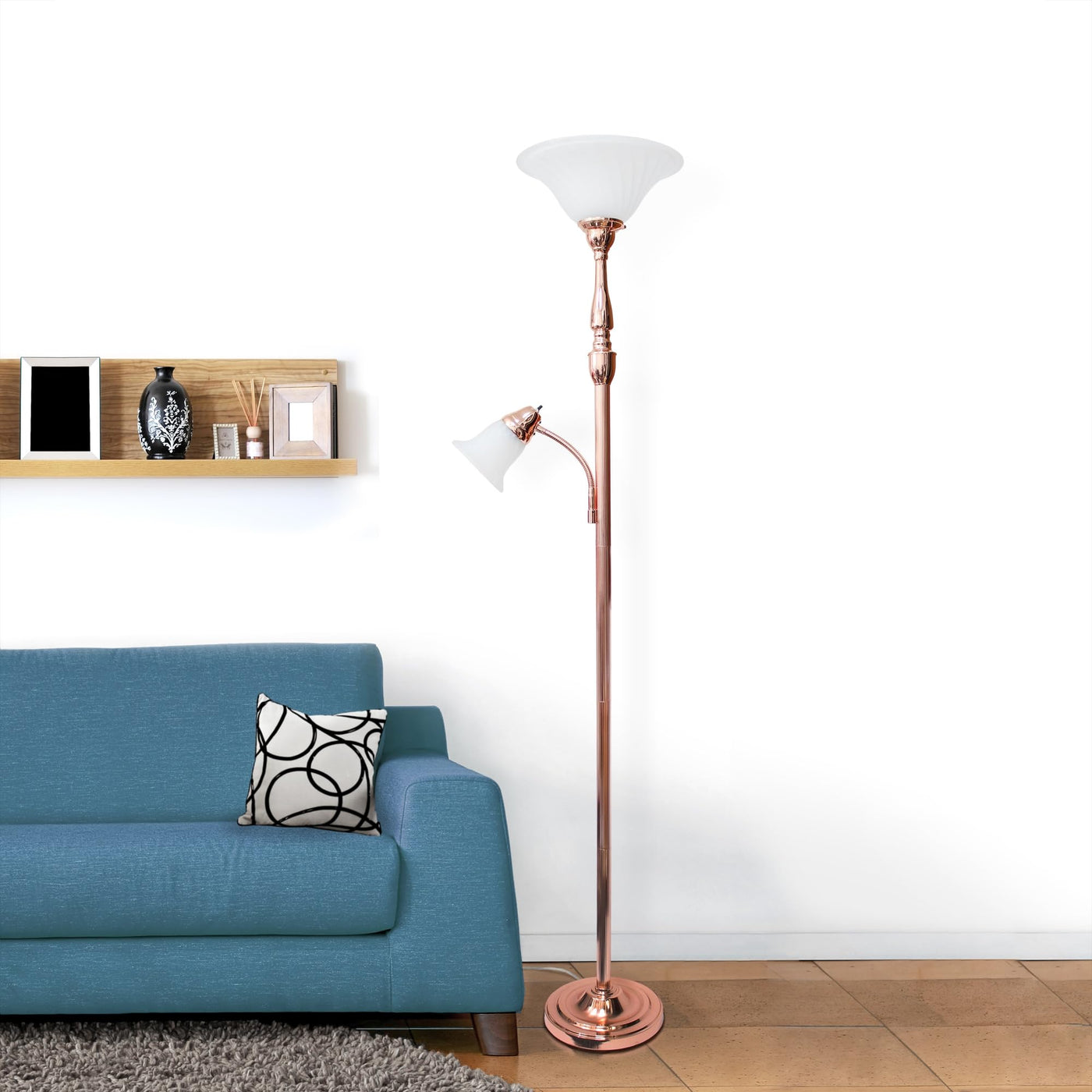Elegant Designs LF2003-RGD 2 Light Mother Daughter White Marble Glass Floor Lamp Rose Gold