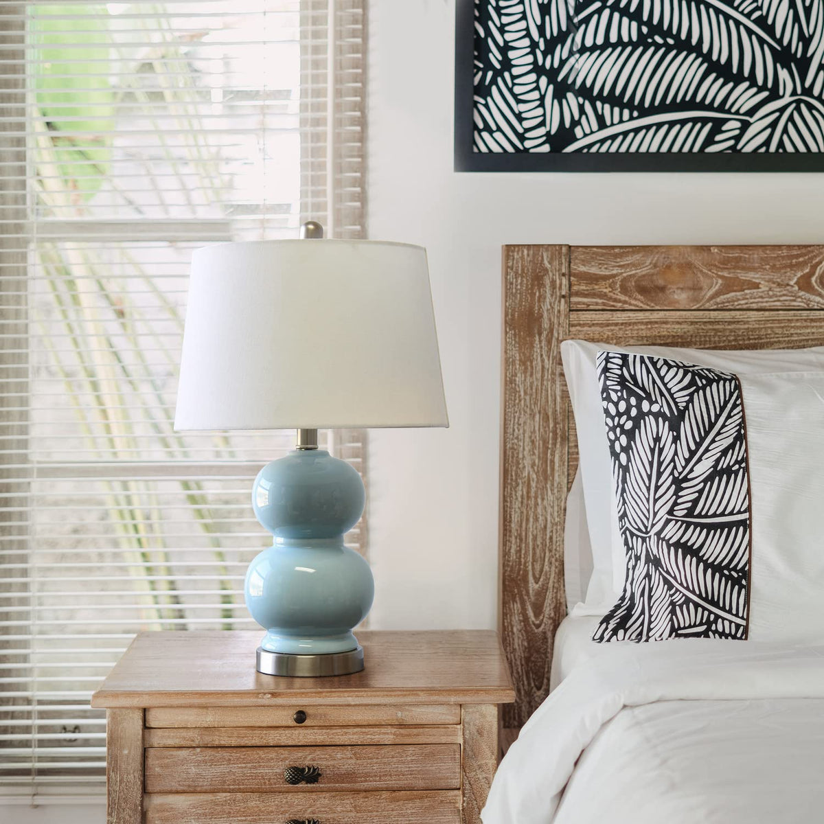 Elegant Designs Light Blue Stacked Stone Double Gourd Ceramic Lamp, 21.25" Tall