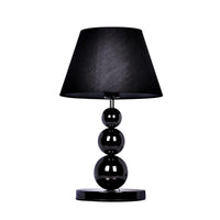 Finish: Pearl black chrome, elegant and high-end | Shade: Ruched black cloth fabric, subtle and stylish | Design: Modern 3 tier ball, unique and eye-catching | Dimensions: Height 19'' Shade diameter 11.81'' | Bulb type: Uses 1 x 60W type A medium base bulb (not included) | Assembly required: No assembly needed | Material: Metal, durable and sturdy | Usage: Indoor use only | Color: Pearl Black, complements any room decor | Pattern: Solid, simple and elegant design