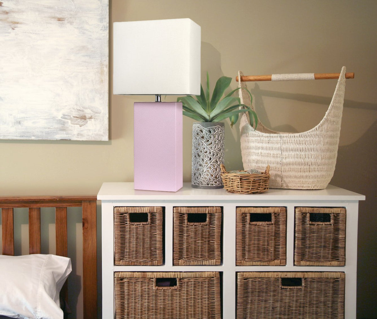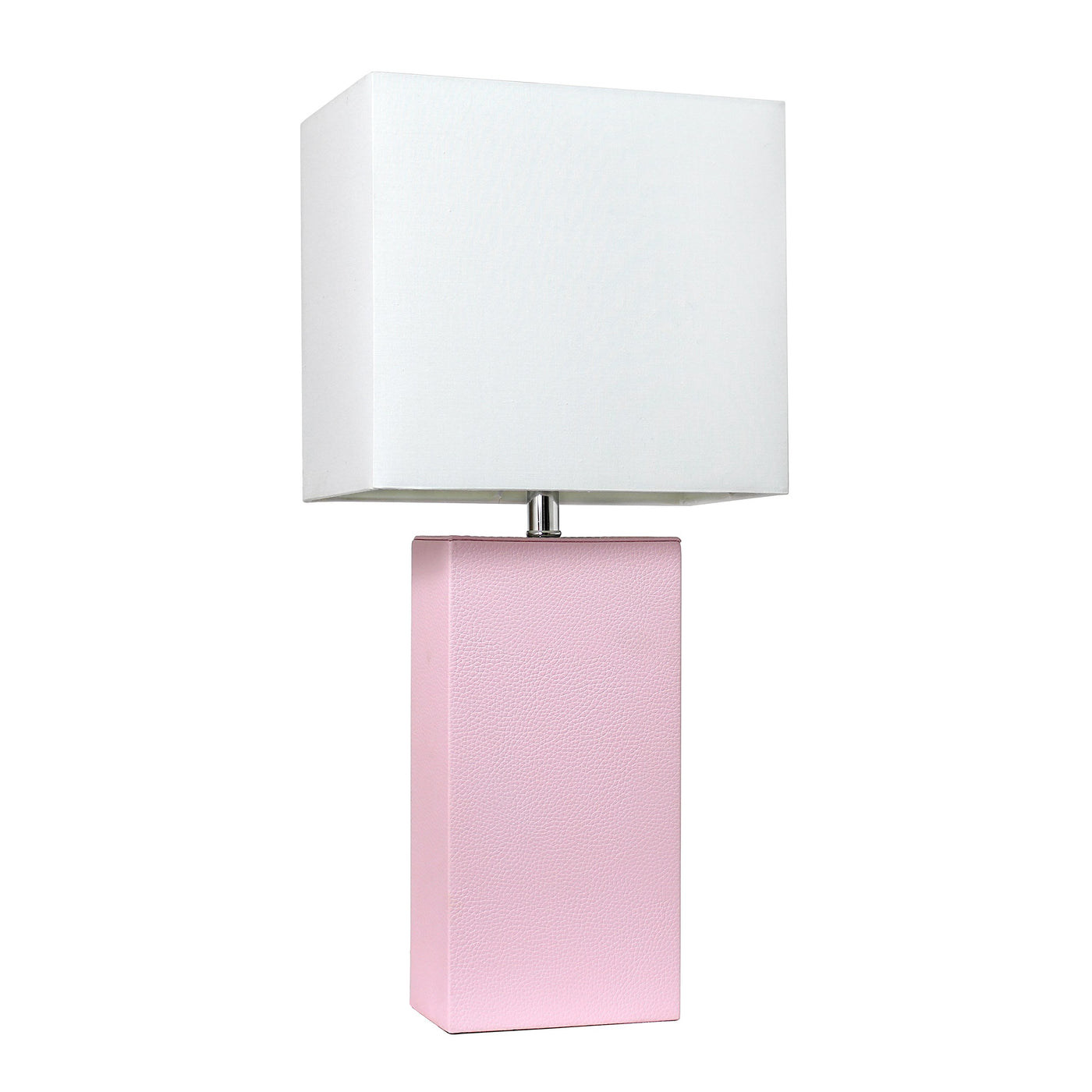 Elegant Designs Lt1025-Bpk Modern Leather Table Lamp With White Fabric Shade, Blush Pink (Pack Of 1)