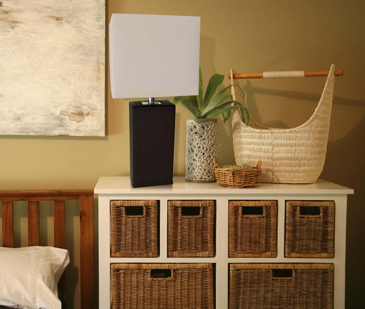 Elegant Designs Lt1025-Bwn Modern Leather Table Lamp With White Fabric Shade, Espresso Brown (Pack Of 1)