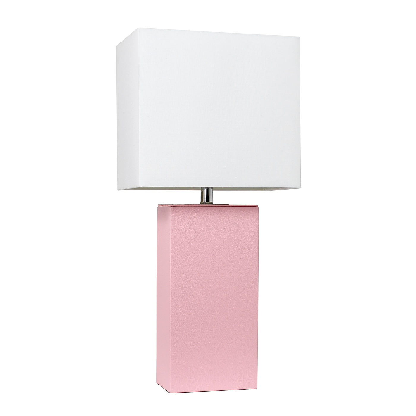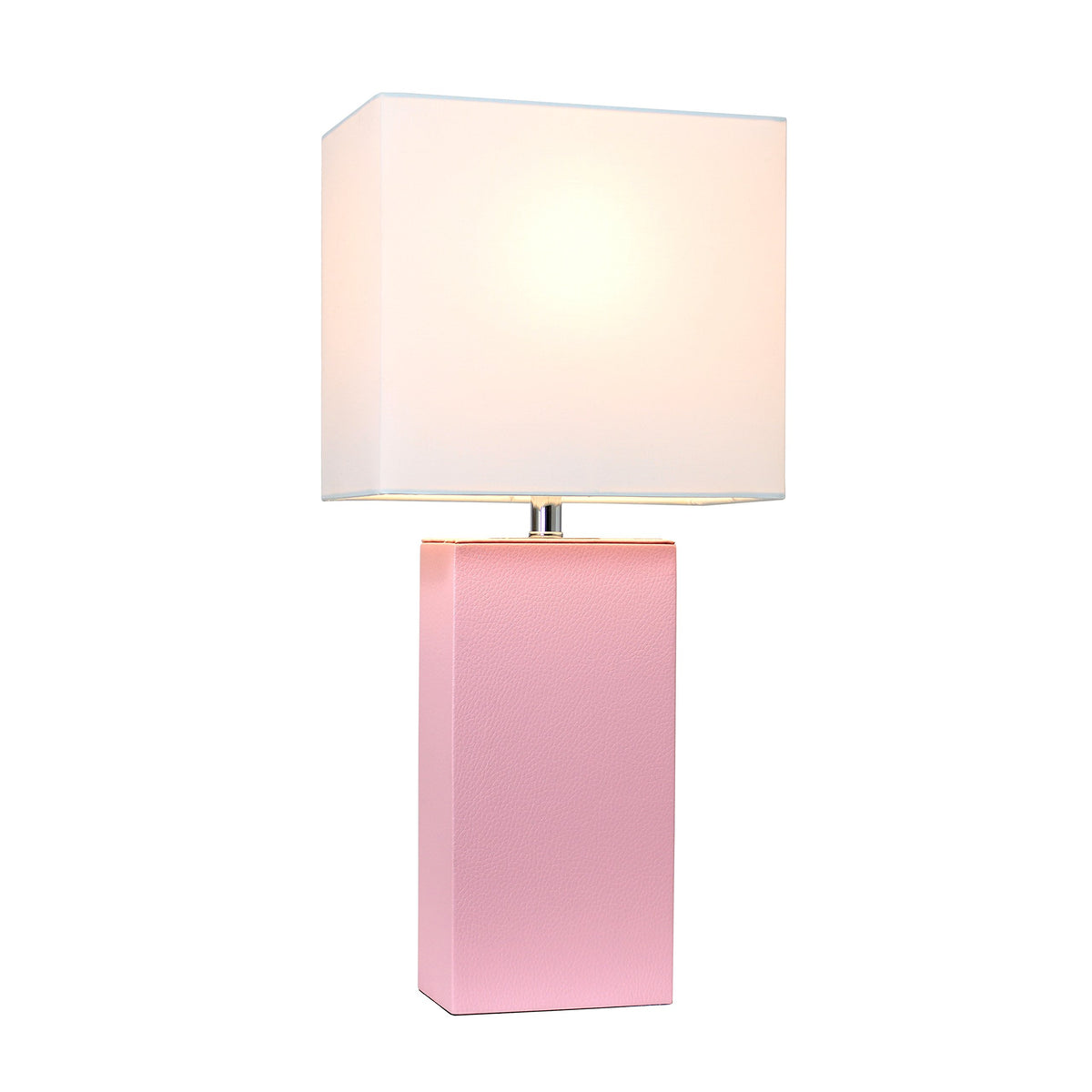 Elegant Designs Lt1025-Pnk Modern Leather Table Lamp With White Fabric Shade, Pink