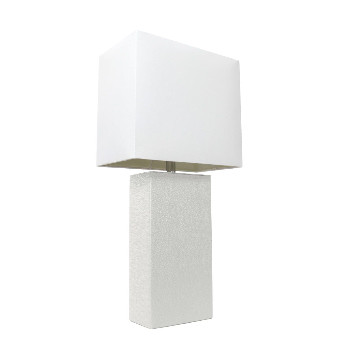 Elegant Designs Lt1025-Wht Modern Leather Table Lamp With White Fabric Shade, White (Pack Of 1)