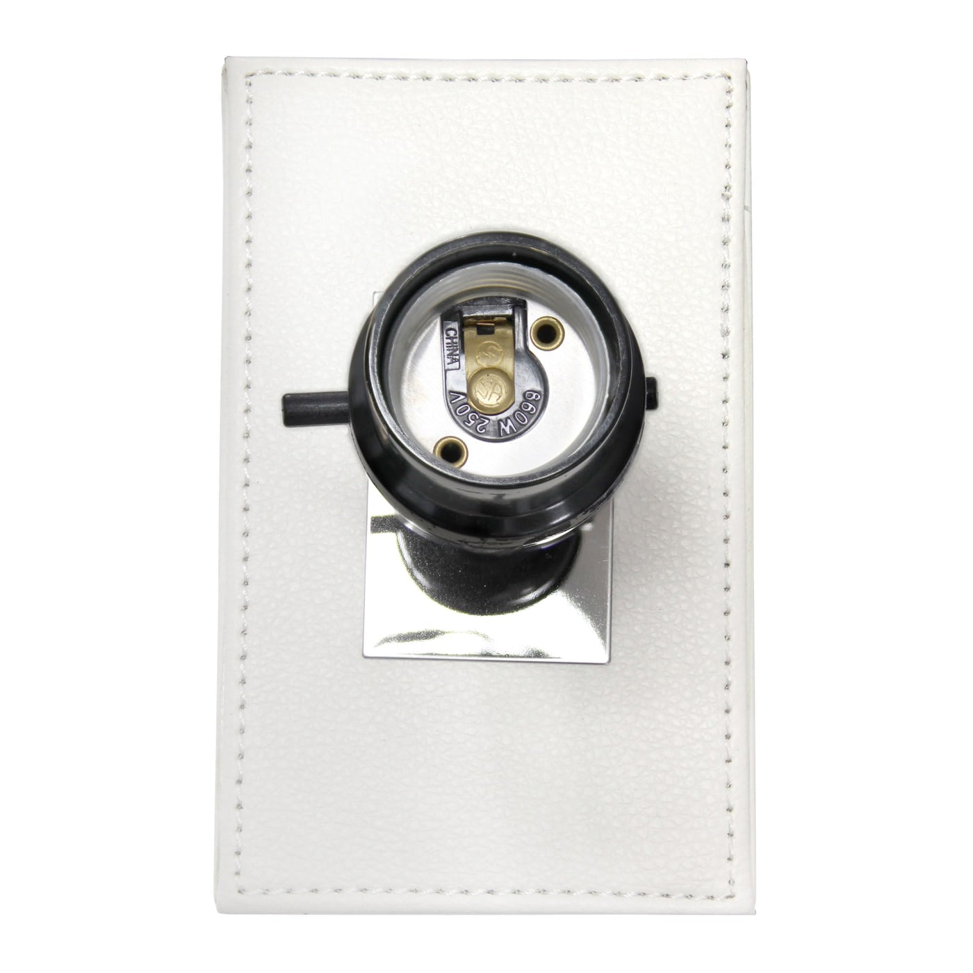 This fashionable table lamp, with its leather body and white fabric shade, will add style and pizzazz to any room. We believe that lighting is like jewelry for your home. Our products will help to enhance your room with elegance and sophistication.