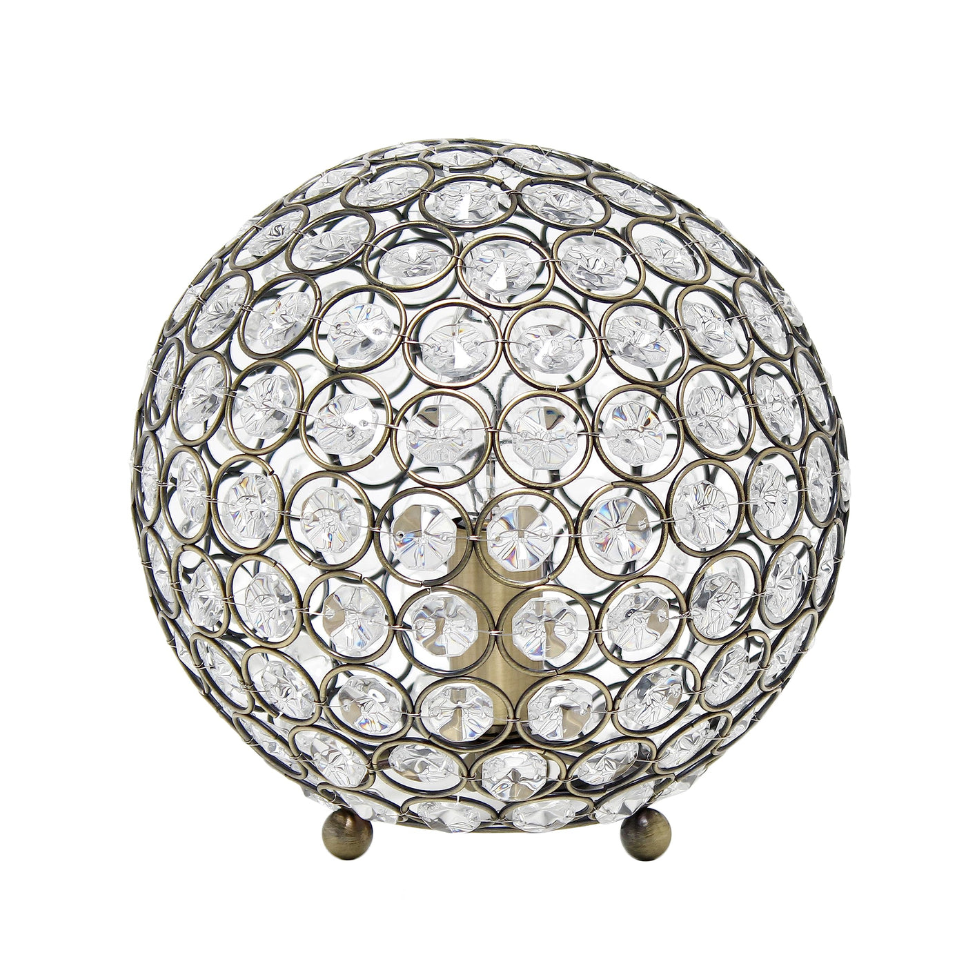 Elegant Designs Lt1026-Abs 8" Elipse Crystal Collection Metal Crystal Ball Sequin Table Desk Lamp For Accent Lighting, Décor, Living Room, Antique Brass