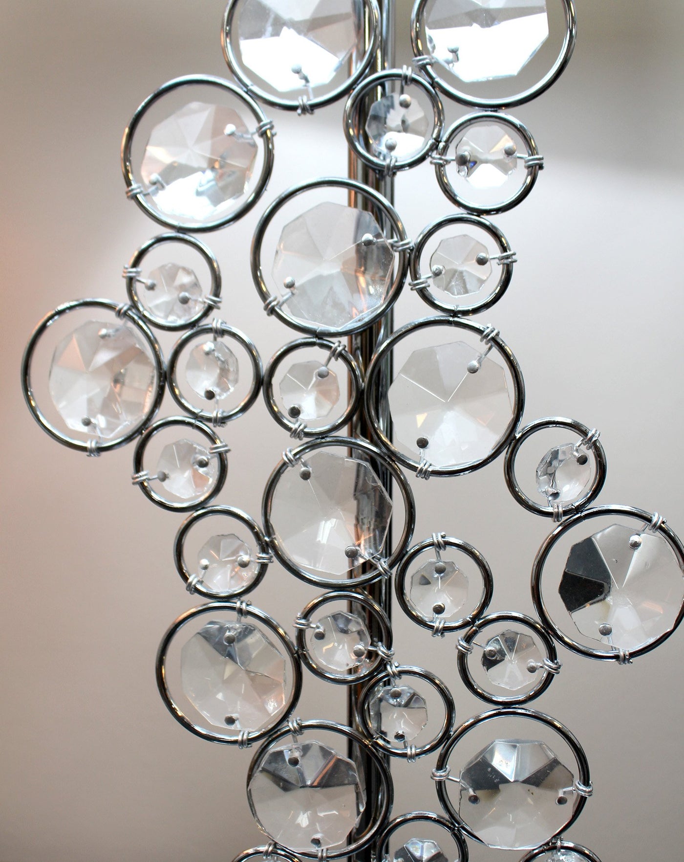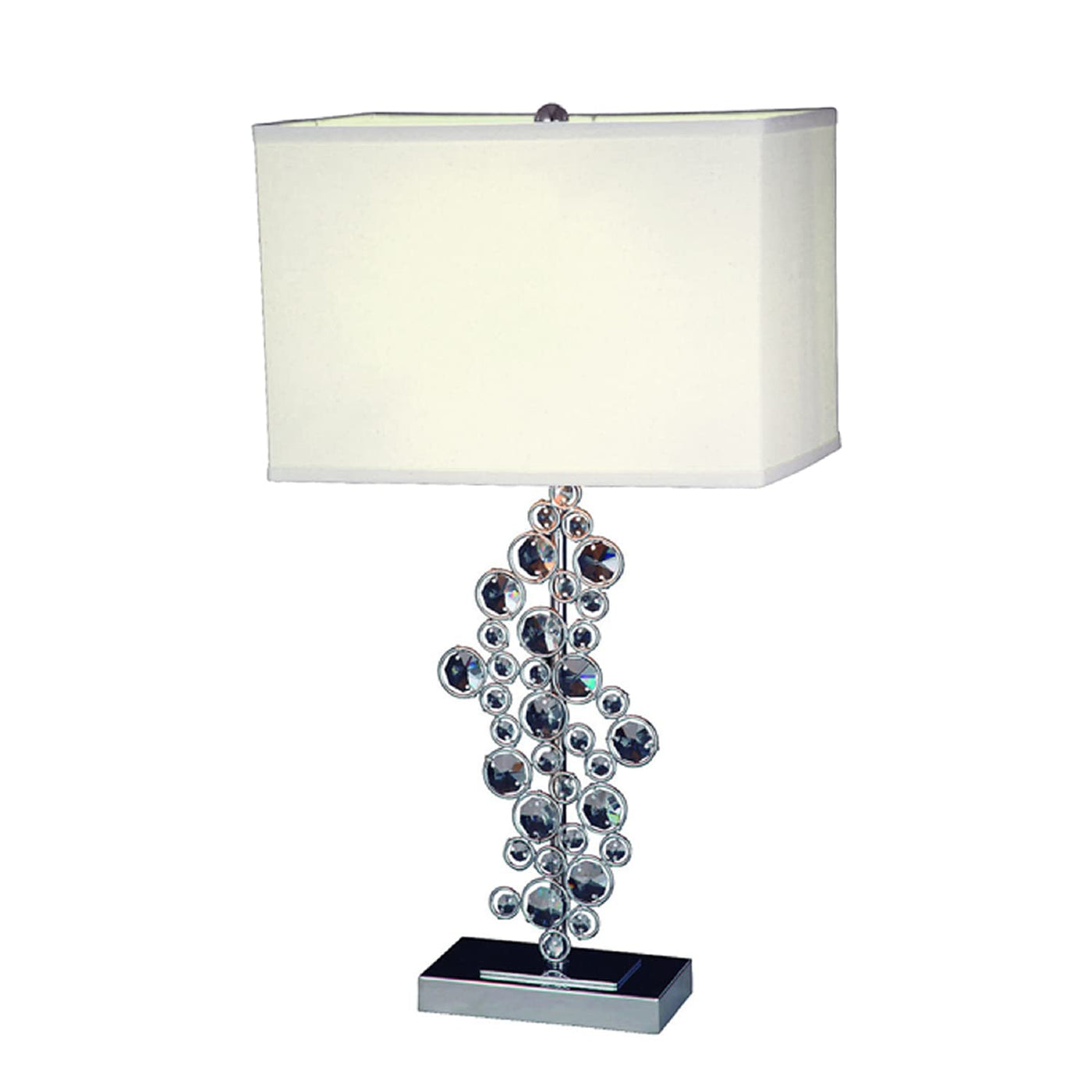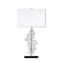 Bejewel your home with this exquisite sequin table lamp. It features beautiful prismatic crystals, a soft white colored shade, and a flawless chrome finish. We believe that lighting is like jewelry for your home. Our products will help to enhance your room with elegance and sophistication.