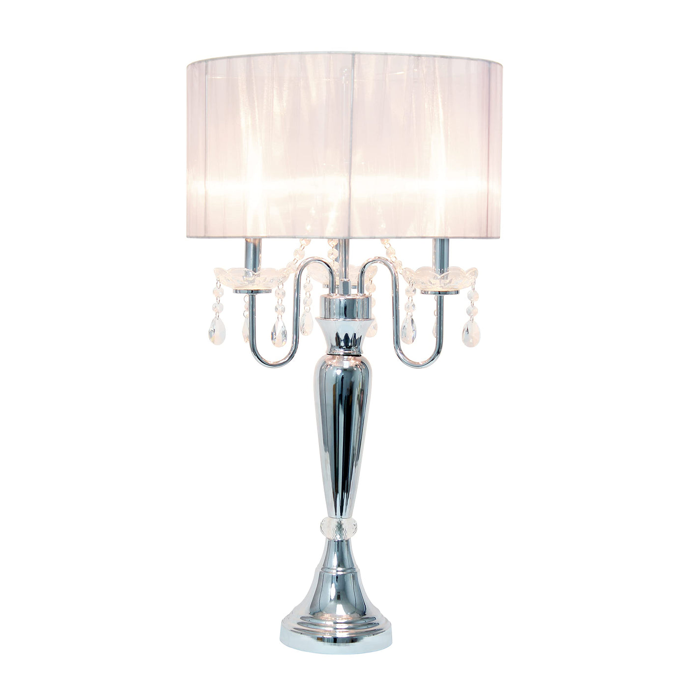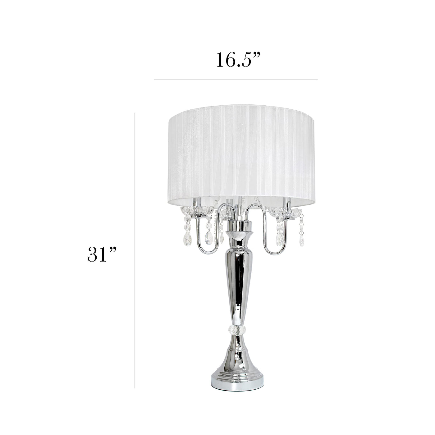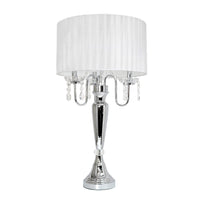 Elegant Designs Lt1034-Wht Trendy Sheer Table Lamp With Hanging Crystals And Sheer Shade, White