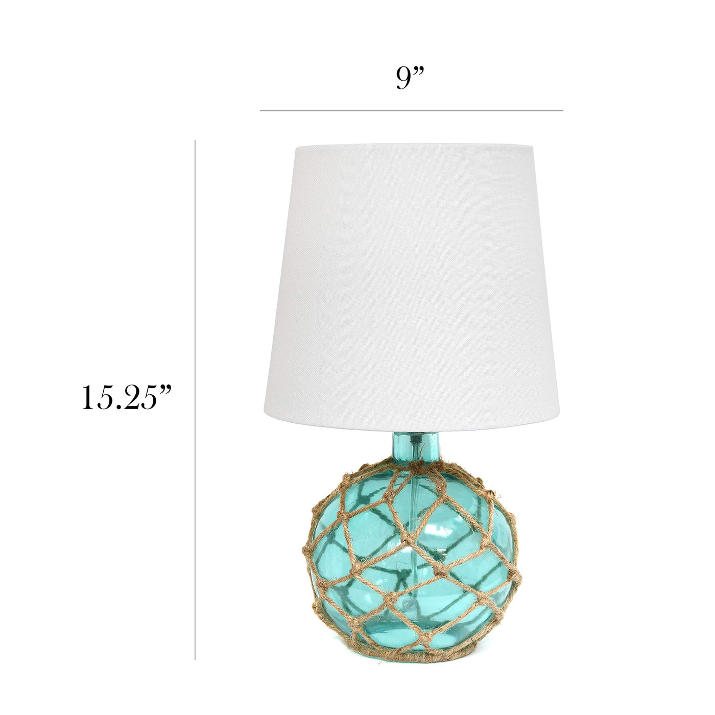 Elegant Designs Lt1050-Aqu Buoy Rope Nautical Netted Coastal Ocean Sea Glass Table Lamp With White Fabric Shade, Aqua (Pack Of 2