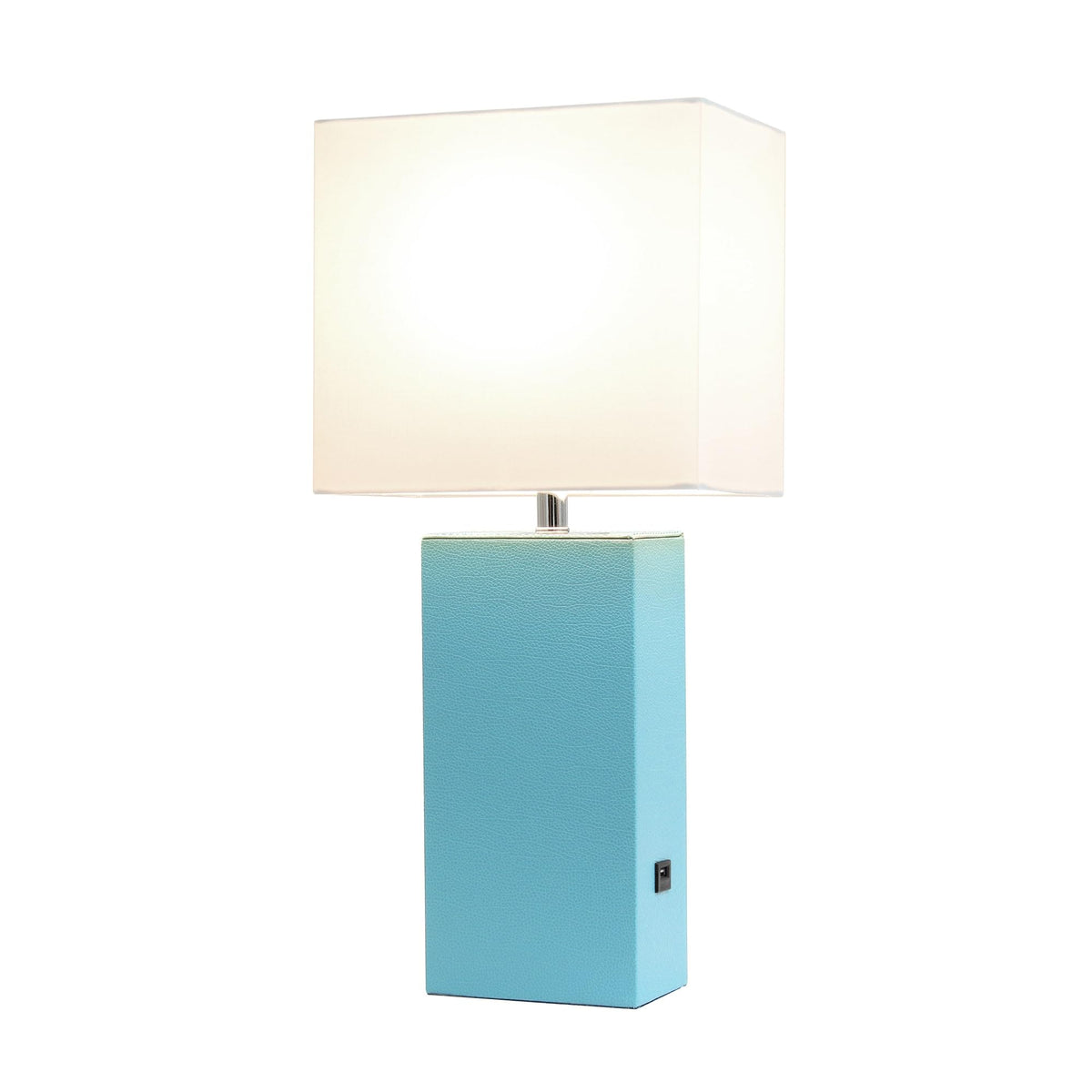 Elegant Designs Lt1053-Aqu Modern Leather Usb And White Fabric Shade Table Lamp, Aqua - (Pack Of 1)