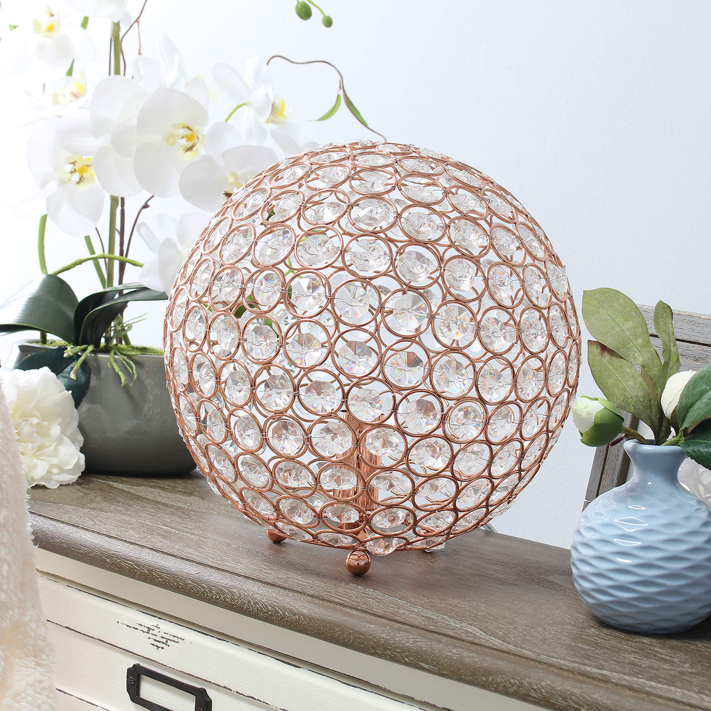 Elegant Designs Lt1067-Rgd 10" Elipse Crystal Collection Metal Crystal Ball Sequin Table Desk Lamp For Accent Lighting, Décor, Living Room, Rose Gold