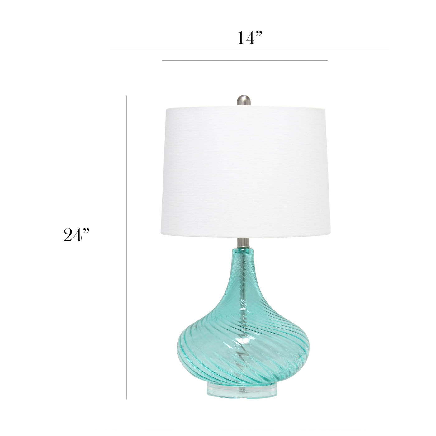 Elegant Designs Lt3214-Blu Glass Table Lamp With Fabric Shade, Light Blue