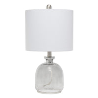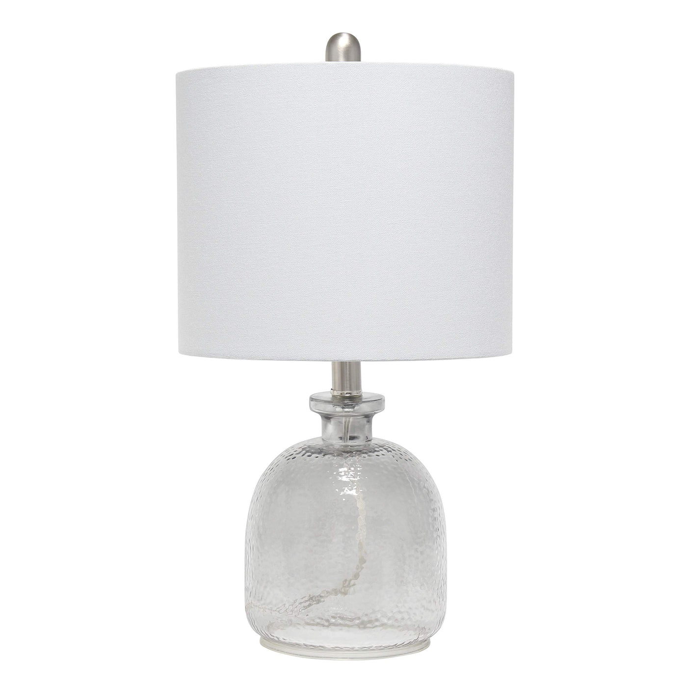 Smokey Gray dome glass base | Light gray fabric drum shade | Easily accessible rotary switch located on the socket | Uses 1 x 60W equivalent medium type A base bulb (not included) | Available in additional base and/or shade color options | Lamp measures D: 11" x 20"
