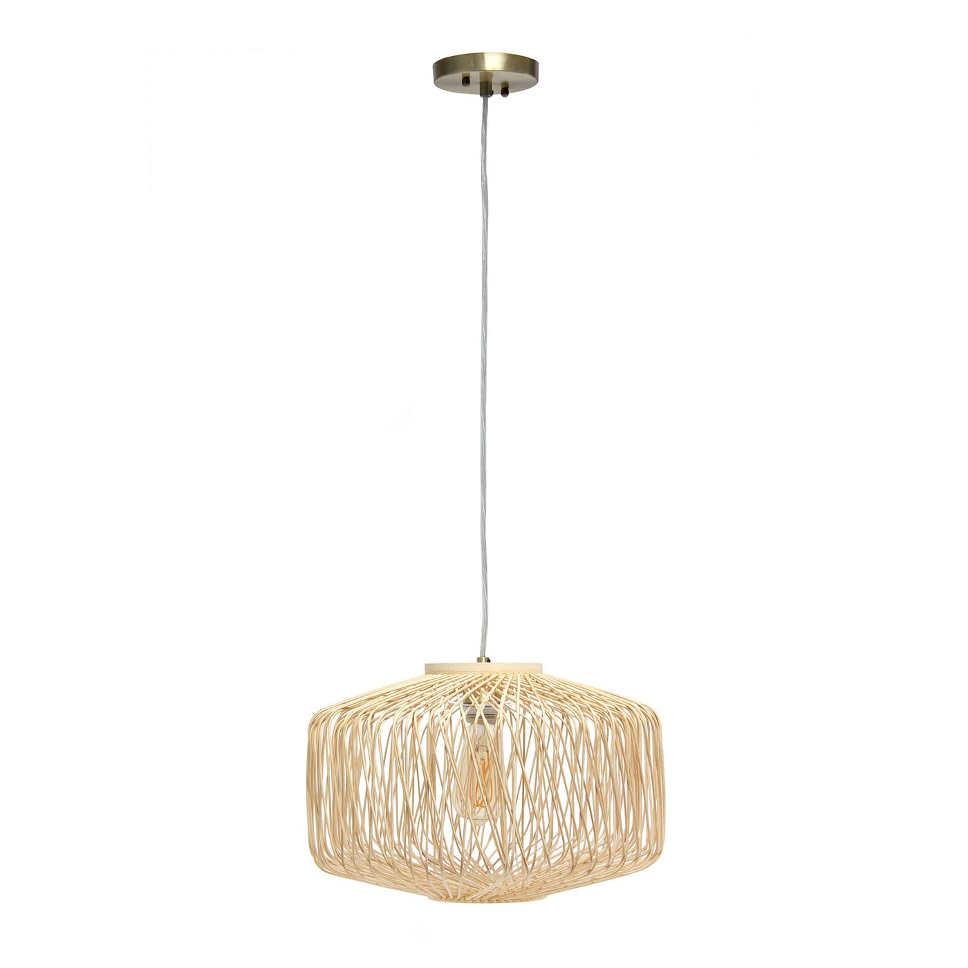 Natural finished pendant made of rattan | Pendant measures: L: 16" x W: 16" x H: 10" | Open style on bottom for easy bulb replacement | 60" of hanging length | Uses 1 x 60W equivalent Type A bulb (not included) | Some assembly and hardwiring is required