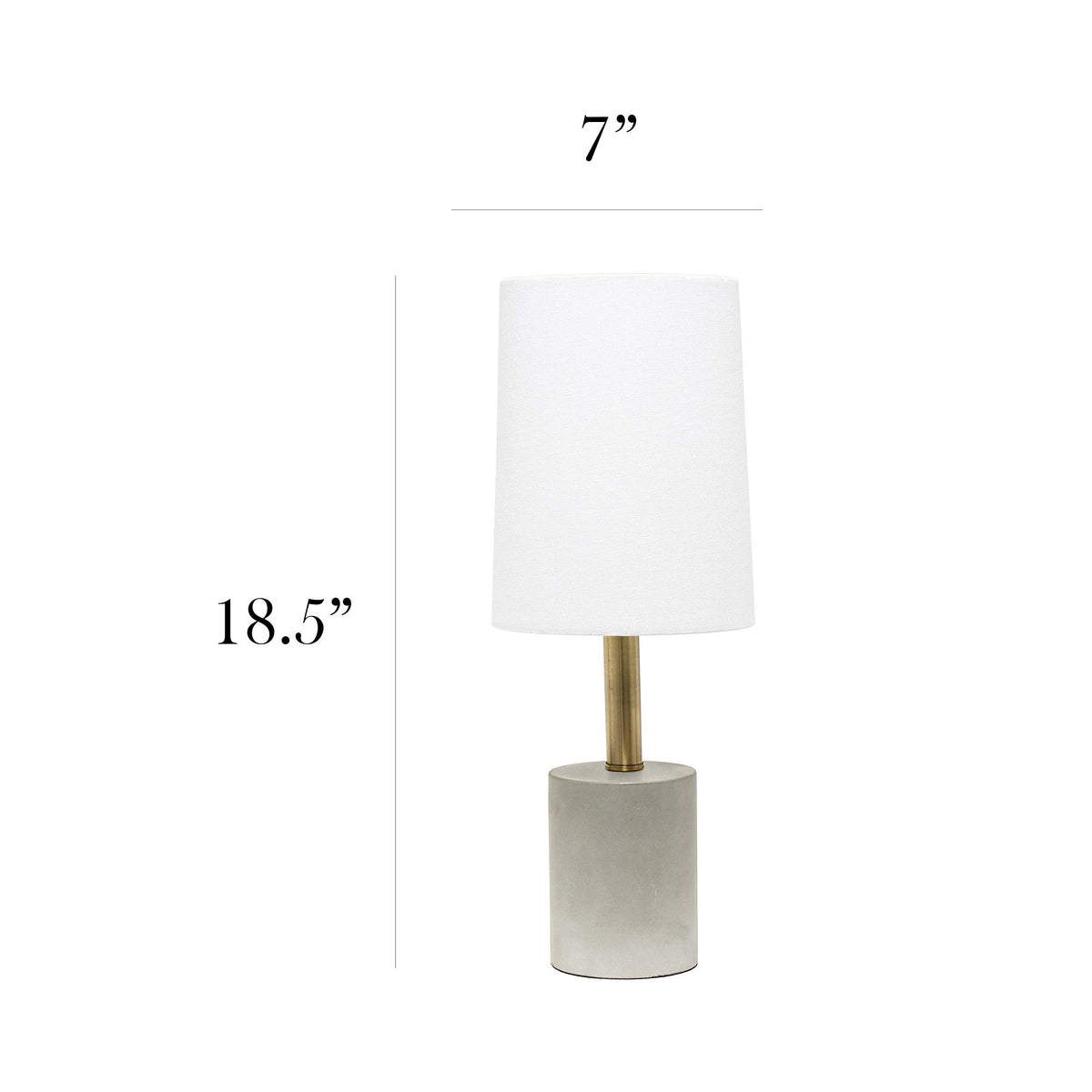 Q: What are the dimensions of the Elegant Designs Cement Table Lamp?A: The lamp measures 7 inches in diameter and 18 inches in height, making it a compact choice for various spaces.