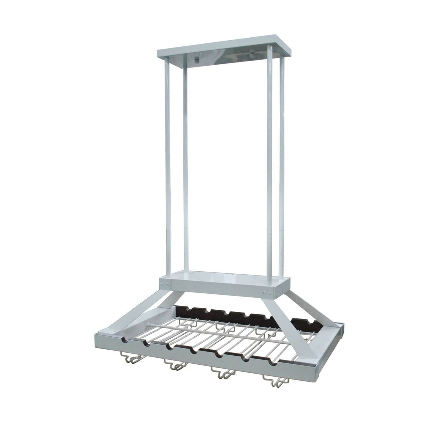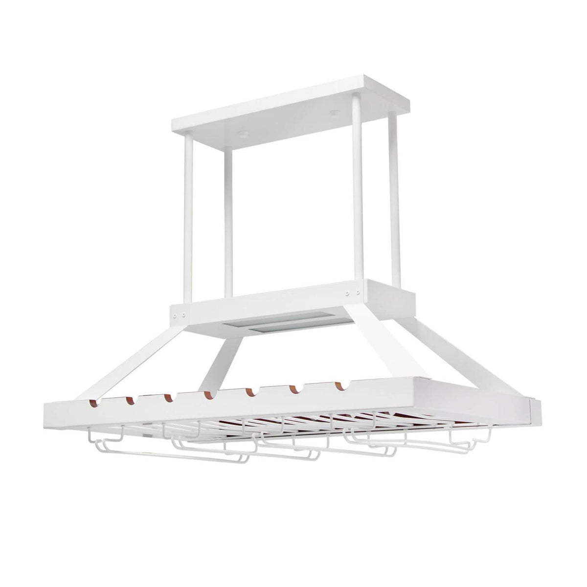 Elegant Designs Wr1000-Wht Kitchen Hanging Led Light Overhead Wine Rack Island Pendant Chandelier Bottle And Glass Storage Display, White