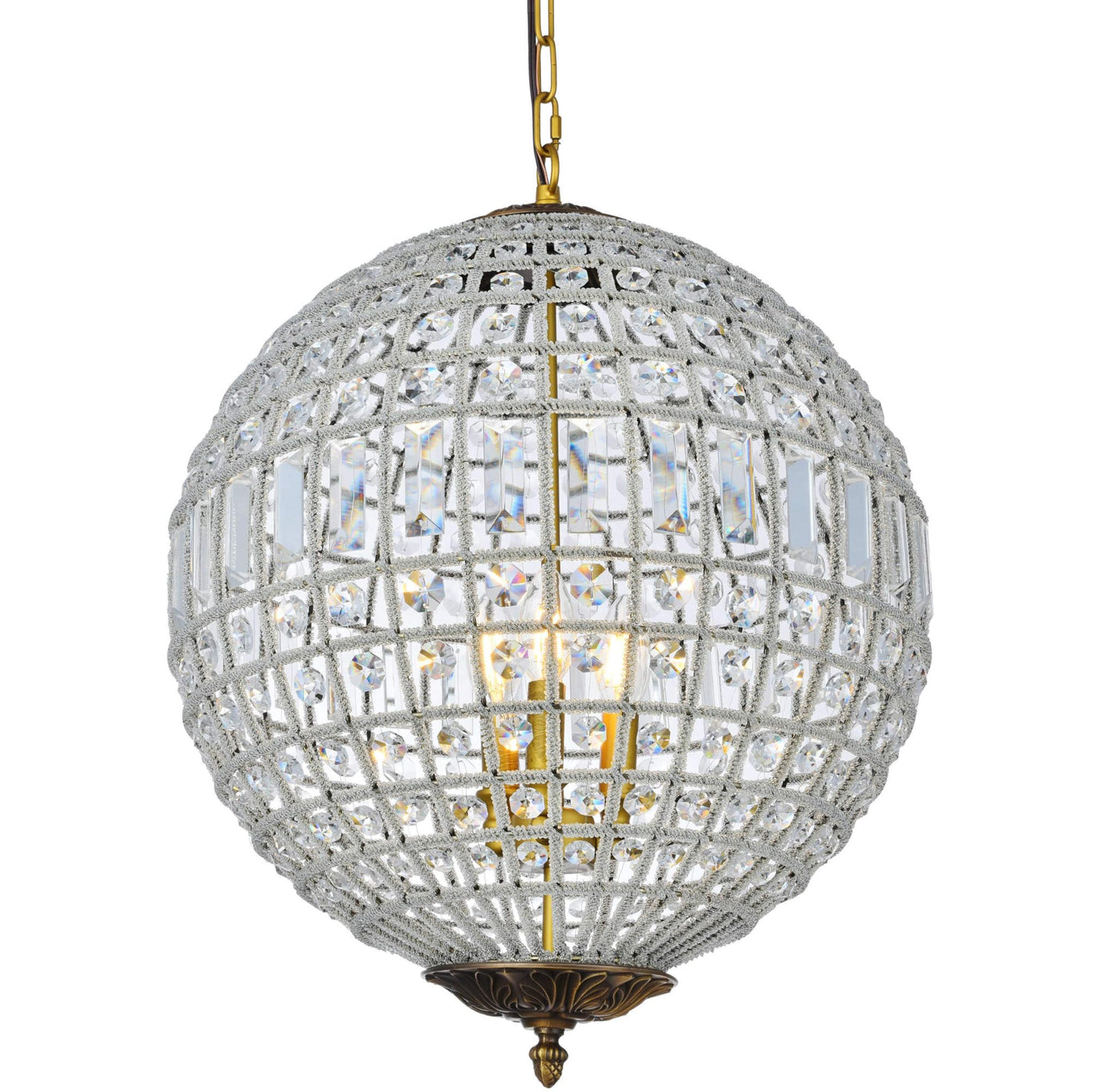 Elegant Lighting 1205 Olivia Collection 3-Light Pendent Lamp With Royal Cut Crystals, 17.5" Depth By 25.5" Height, French Gold Finish