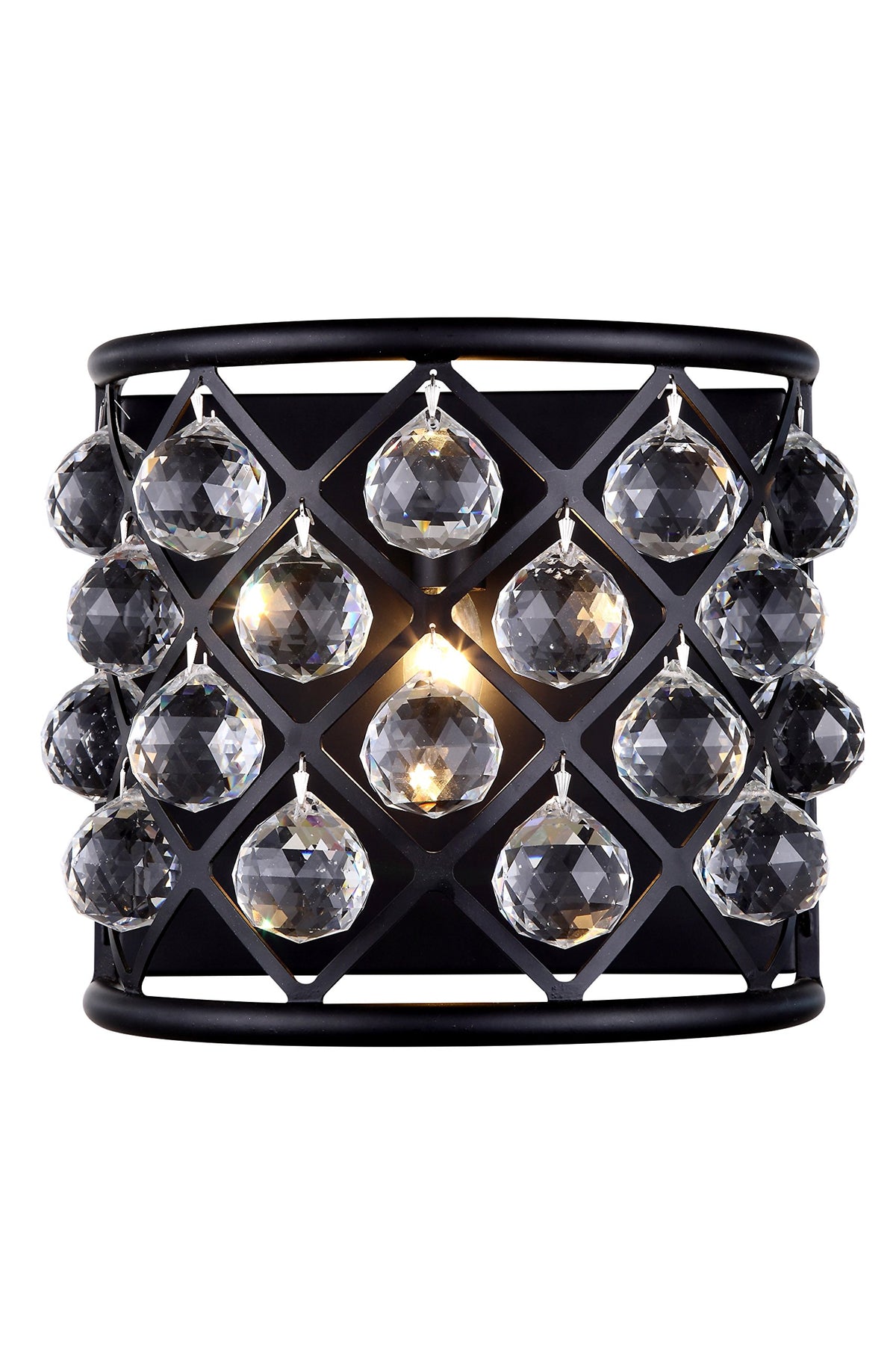 Hand polished clear crystal spheres hang like gems from a forged iron grid The circle meets the square in an explosion of reflection Also comes with multi-faceted crystal balls in golden teak or silver shadowFeaturesType - Wall SconceStyle - Transitionalcollection - Madison1 Light BulbsBulb Type - E1240 WattsMax Wattage - 40Voltage - 110V-125VFinish - Mocha Browncrystal Trim - Royal cutcrystal color - crystal clearUL & Ulc StandardSize - 115 W x 105 H inExtension Size - 65chain/Wire Included - 10 inHanging Weight - 9 lbs