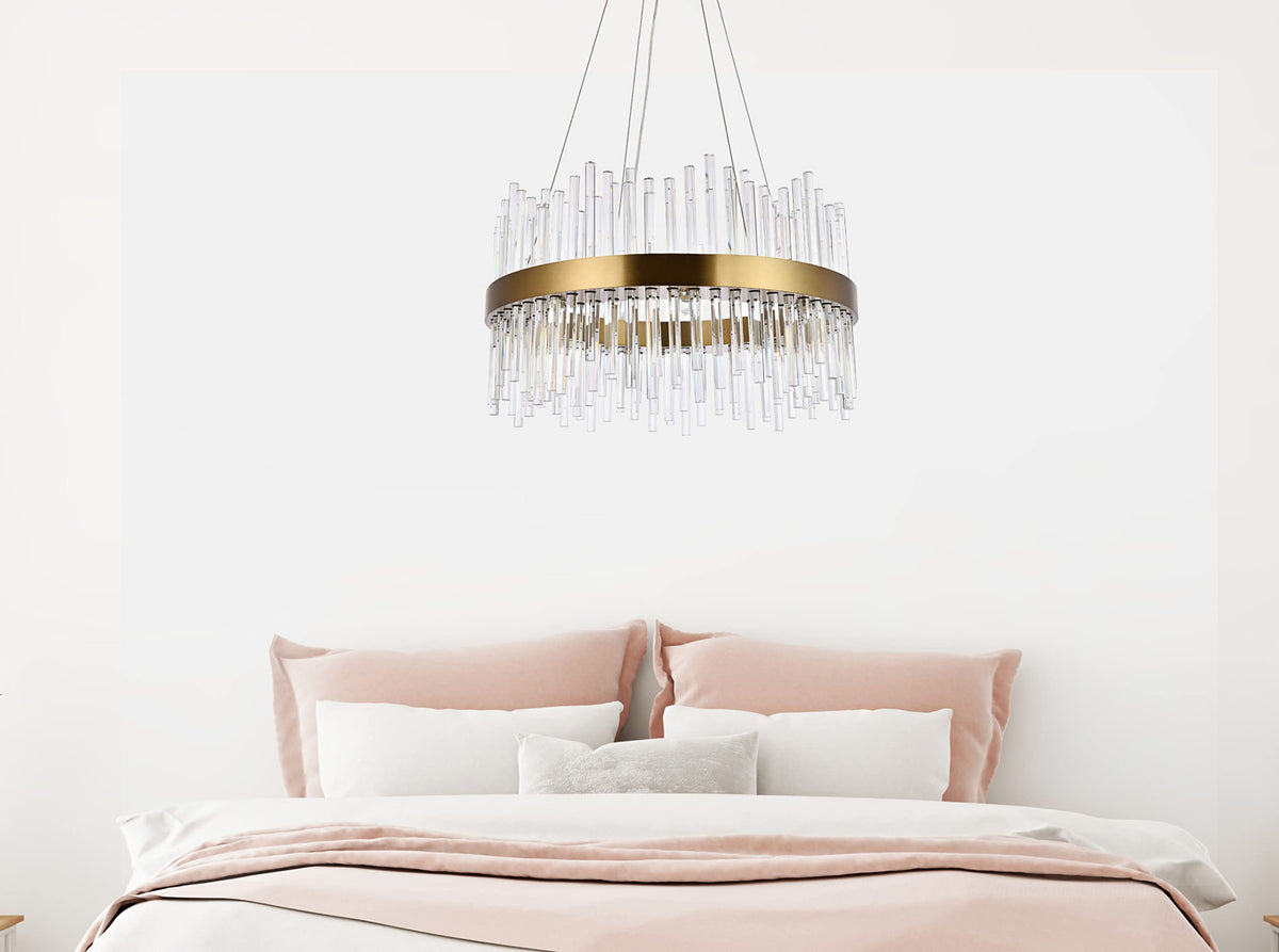 Q: How do I care for and maintain my Elegant Lighting Dallas Chandelier?A: To maintain the Elegant Lighting Dallas Chandelier, dust it regularly with a soft cloth and avoid using harsh chemicals. For deeper cleaning, carefully remove the glass rods and clean them with a glass cleaner.