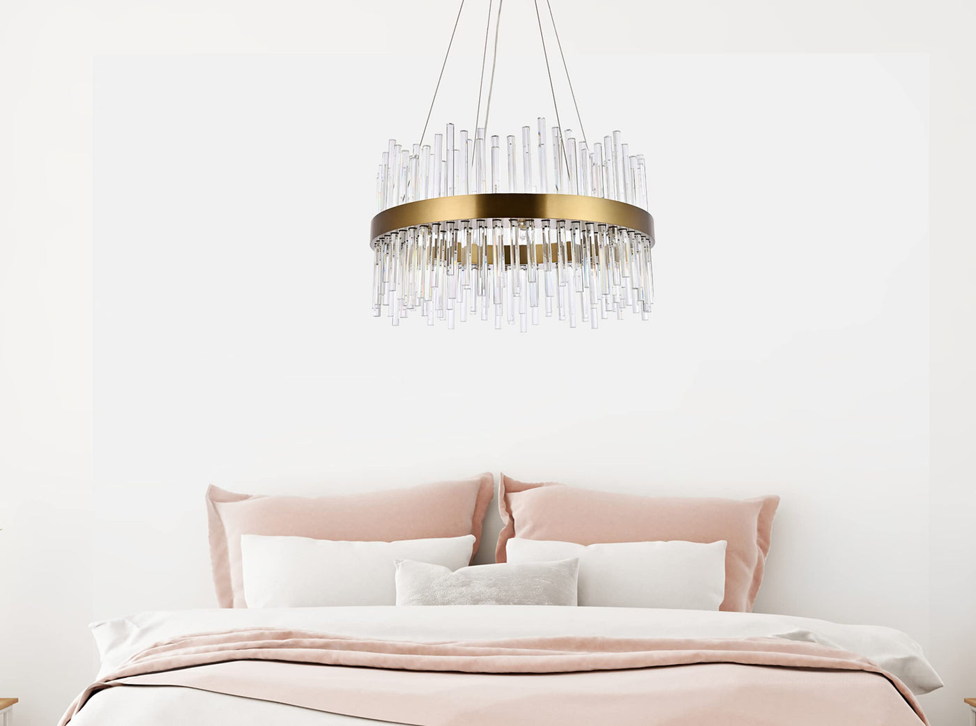 Q: What are the dimensions of the Elegant Lighting Dallas 16 Light Chandelier?A: The Elegant Lighting Dallas Chandelier has a diameter of 25 inches and a height of 14 inches, making it a perfect fit for various spaces, including dining rooms and living areas.