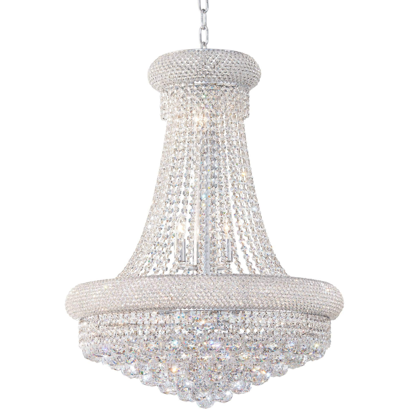 This classic, elegant empire series is flowing with symmetry creating a dramatic explosion of brilliance Primo is a dynamic collection of chandeliers that add decorative drama to any settingFeaturesFinish - chromecrystal trim - Royal cutcrystal color - crystal (clear)Style - TransitionalType - Dining roomcollection - PrimoUL & ULc standardchain/Wire included - 5 ftNo of bulb - 14Bulb type - E12Bulb wattage - 60Max wattage - 840Voltage - 110V-125VHanging weight - 70Dimension - 24 Dia x 32 H in