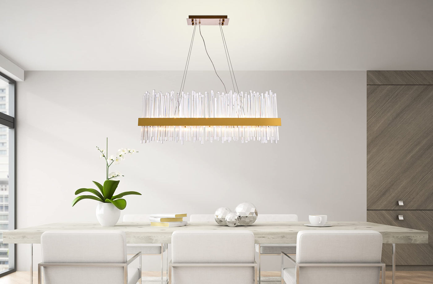 Q: Is the chandelier adjustable in height?A: Yes, the chandelier features adjustable hanging heights, allowing you to customize its placement to suit your room's design.