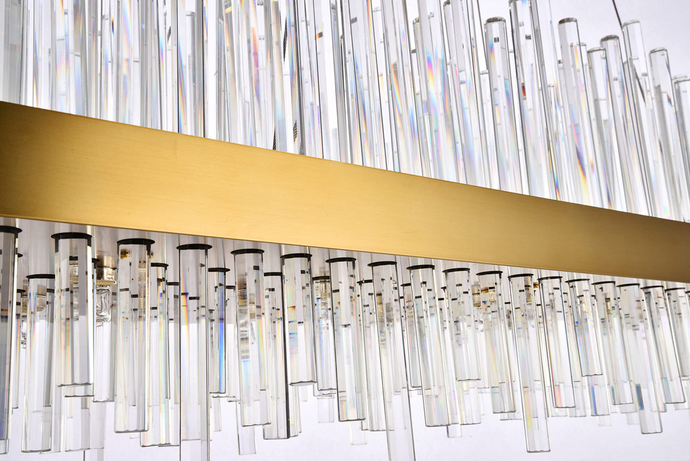 Q: What are the dimensions of the Elegant Lighting Dallas Chandelier?A: The Elegant Lighting Dallas Chandelier measures 36 inches in length, 12 inches in width, and 14 inches in height, making it a perfect fit for various spaces.