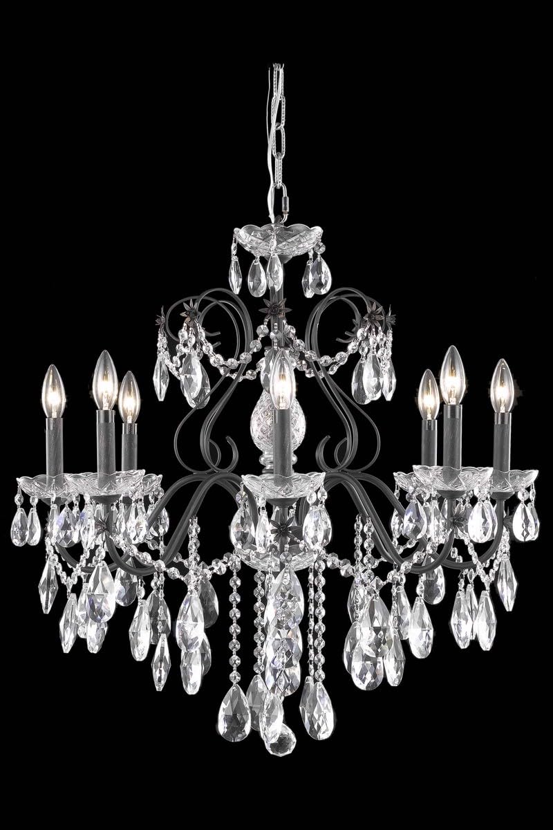 Reminiscent of classic chandeliers, the St Francis series brings the past to life in today's homes with stunning crystal pendalogues and crystal bobeches on gold or chrome framesFeaturesFinish - Dark bronzecrystal trim - Royal cutcrystal color - crystal (clear)Style - TransitionalType - Dining roomcollection - St FrancisUL & ULc standardchain/Wire included - 5 ftNo of bulb - 6Bulb type - E12Bulb wattage - 60Max wattage - 360Voltage - 110V-125VHanging weight - 16Dimension - 24 Dia x 21 H in