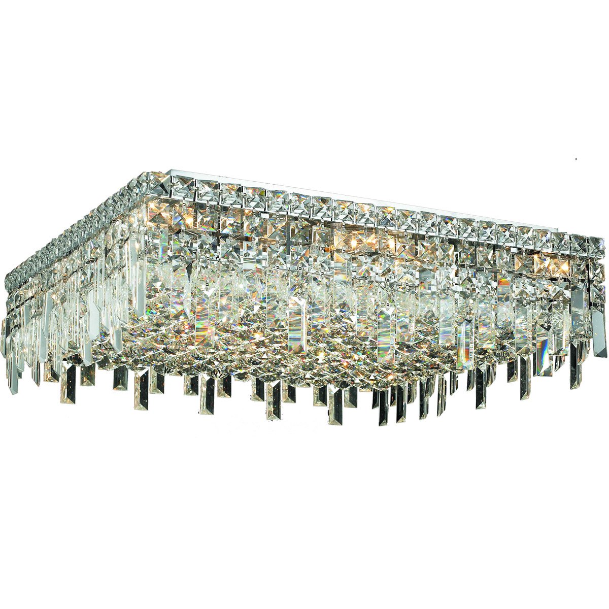 Elegant lighting 2033f24c maxim 13-light, single-tier flush mount crystal chandelier, finished in chrome with clear crystals elegant lighting 2033f24c features: base finish: chrome with clear crystal choose from royal cut, elegant cut, Swarovski Spectra or Swarovski elements crystal types: royal cut- a combination of high quality, lead-free, machine cut and polished crystals, and full-lead machine-cut crystals, whose appearance rivals that of a more expensive chandelier crystal elegant cut- elegant cut crystals consist of 30% high quality full-lead machine-cut crystal that is above industry standards. It possesses sharp faceting polished to a visual radiance Swarovski Spectra- beautiful and reliable quality crystal by Swarovski elements- an exercise in technical perfection, Swarovski elements crystal meets all standards of perfection. It is original, flawless and brilliant, possessing lead oxide in excess of 33%. made in Austria, each facet is perfectly cut and polished by machine to maintain optical purity and consistency (13) 60-watt candelabra base bulbs (not included)hanging WEIGHT 80 product dimensions: 7 inch h x 24 inch W x 24 inch from the elegant lighting maxim collection elegant lighting, headquartered in Philadelphia, pa, is a premium designer of crystal lighting. Since its inception in the year 2000, elegant lighting has made innovative strides in crystal lighting design, that resulted in them becoming the fastest-growing crystal lighting Company in the industry. Elegant lighting actively ensures, throughout every step of production, that the lighting you purchase is a beautiful piece of art, and that it graces your home or business with its sheer perfection.