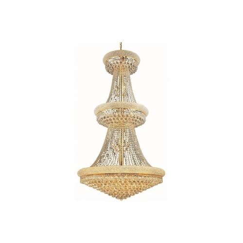 Transform your space with the stunning Elegant Lighting 1800G36G Primo 32-Light Crystal Chandelier. This magnificent three-tier chandelier is a perfect blend of grandeur and elegance, making it an ideal centerpiece for any room.